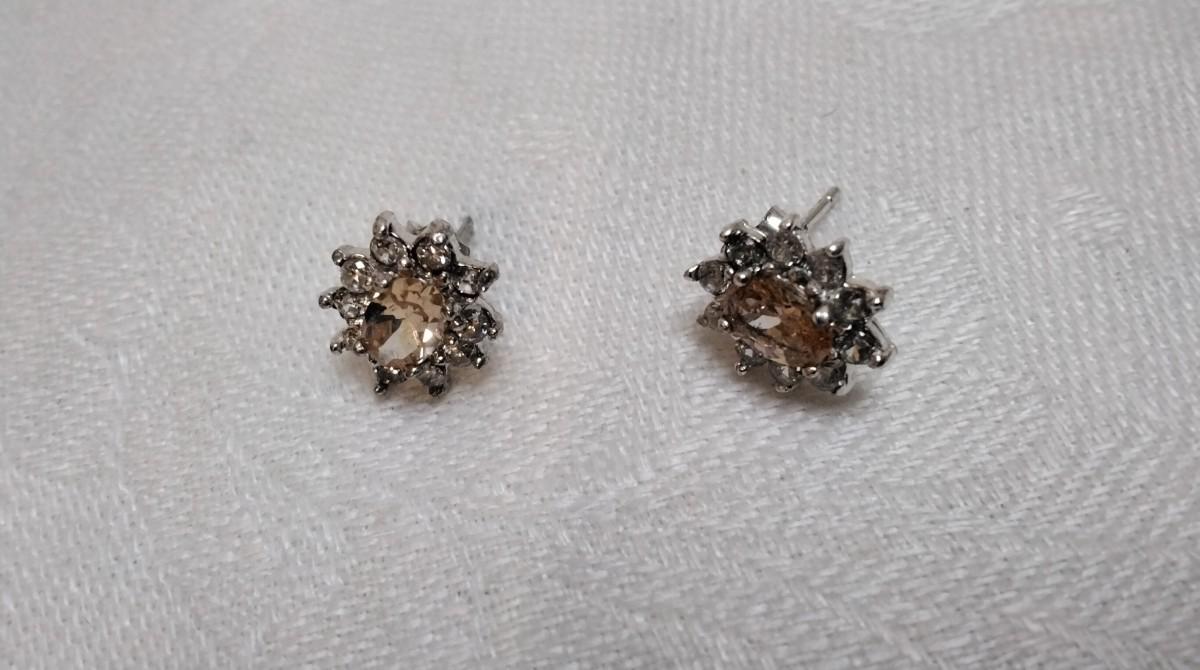 CW Citrine Surrounded by White Sapphires 925 Earrings