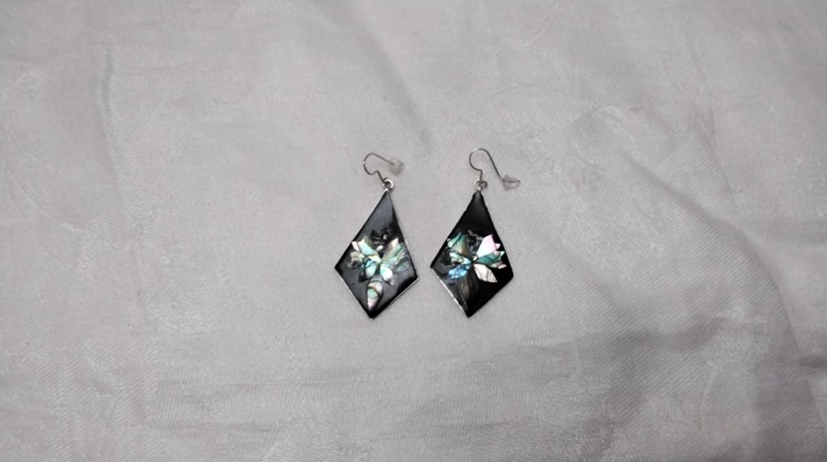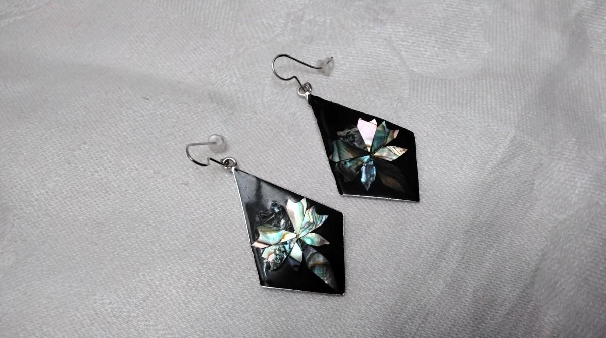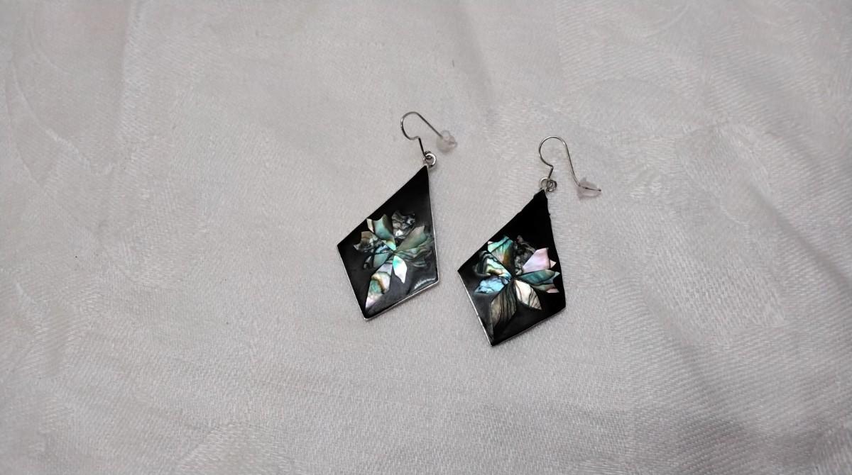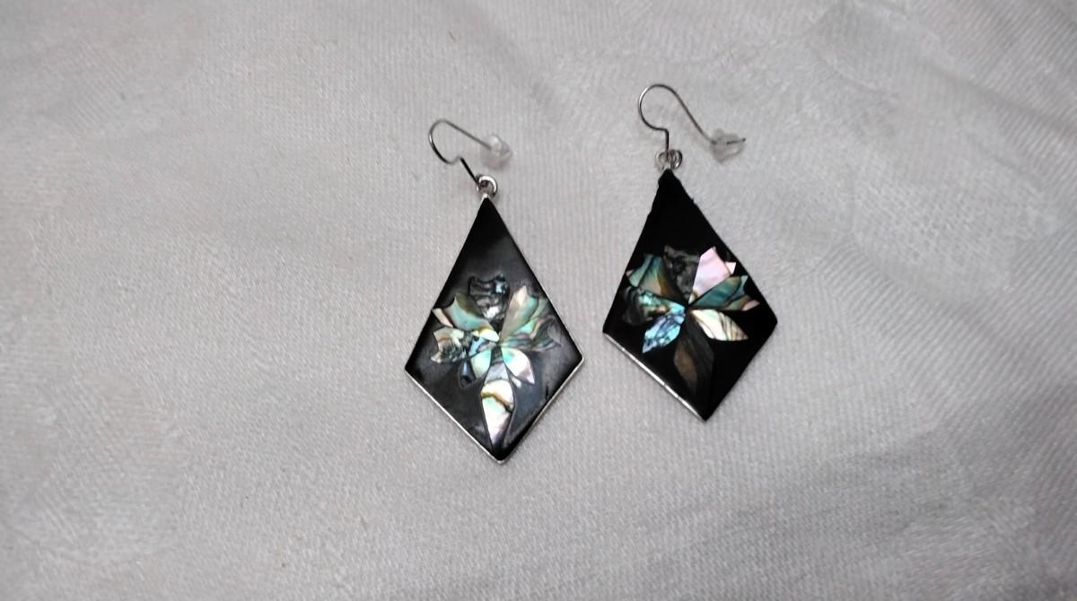 Vintage Onyx and Abalone Mexico 925 Earrings