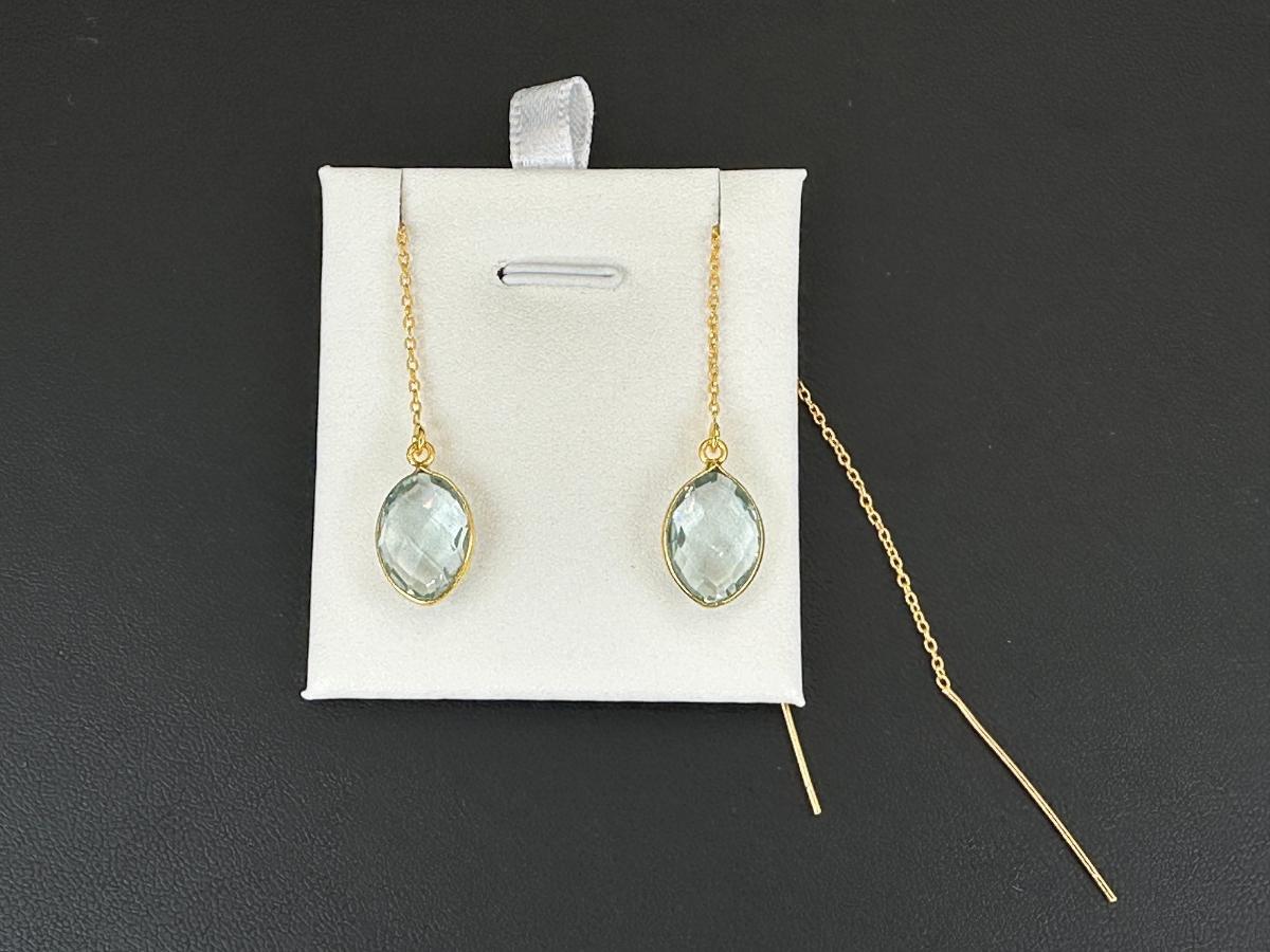 Earrings 925 Silver-Tone, Gold-Plated Aquamarine Gemstone