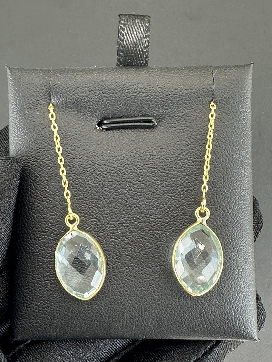 1. Earrings 925 Silver-Tone Gold-Plated Aquamarine Gemstone