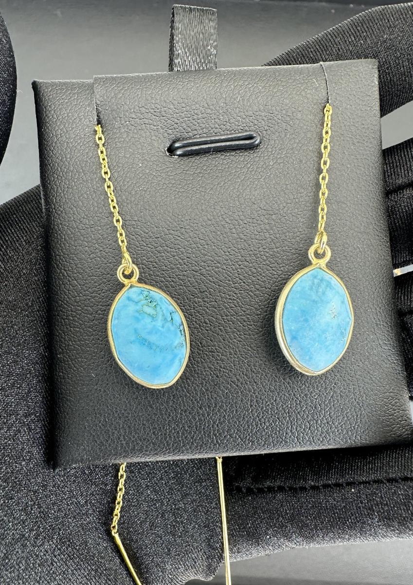 Earrings 925 Silver-Tone, Gold-Plated Natural Turquoise Gemstone