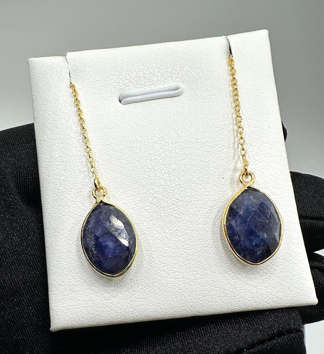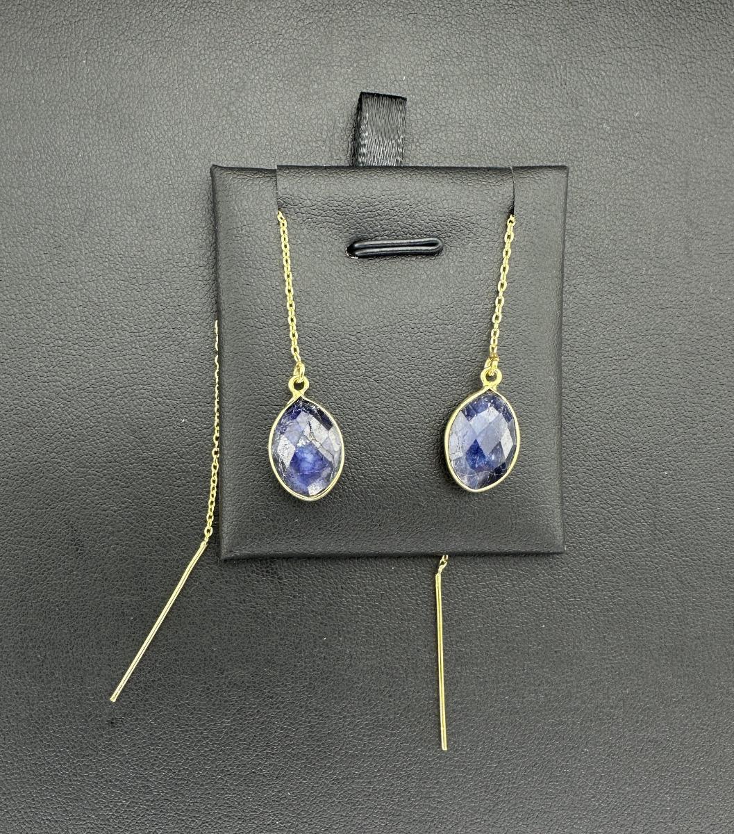 Earrings 925 Silver-Tone, Gold-Plated Natural  Blue Sapphire Gemstone