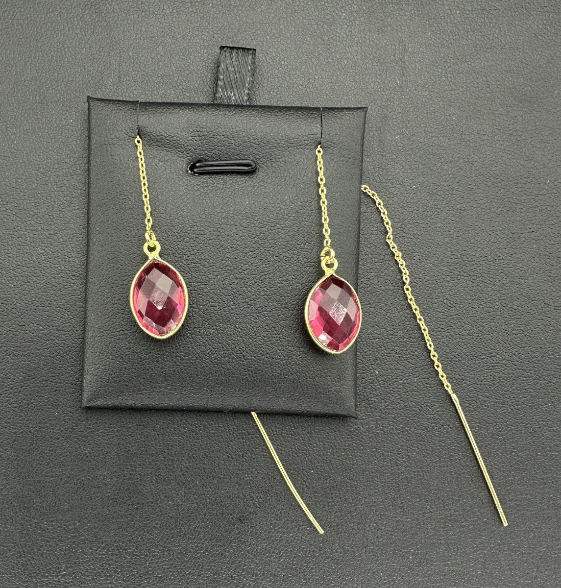 1. Earrings 925 Silver-Tone Gold-Plated Natural Pink Tourmaline Gemstone