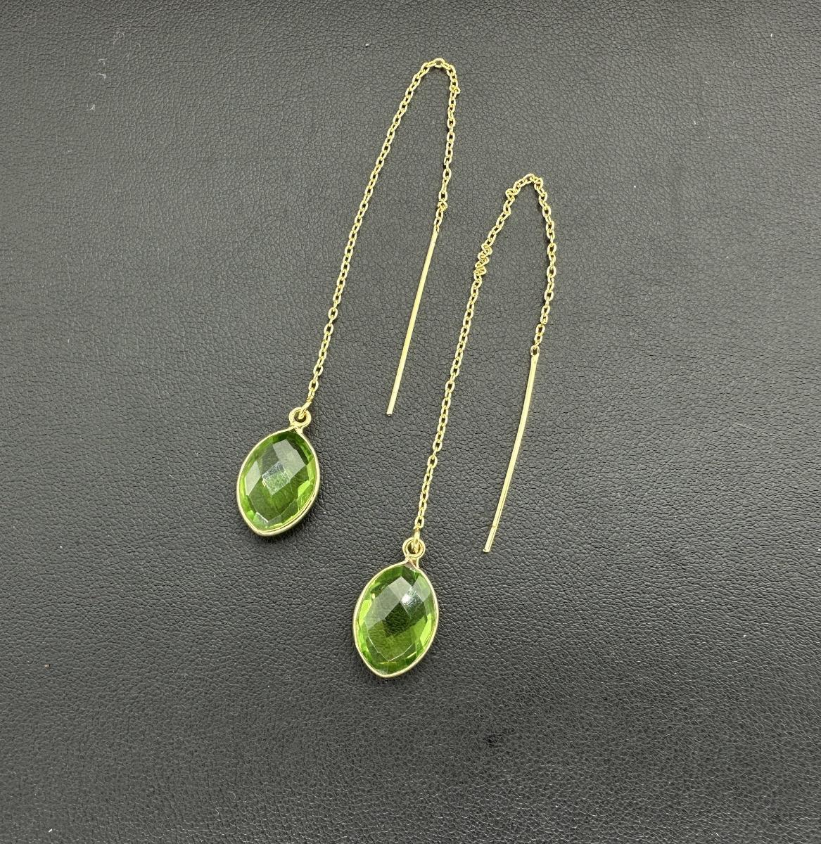 Earrings 925 Silver-Tone, Gold-Plated Natural Peridot Gemstone