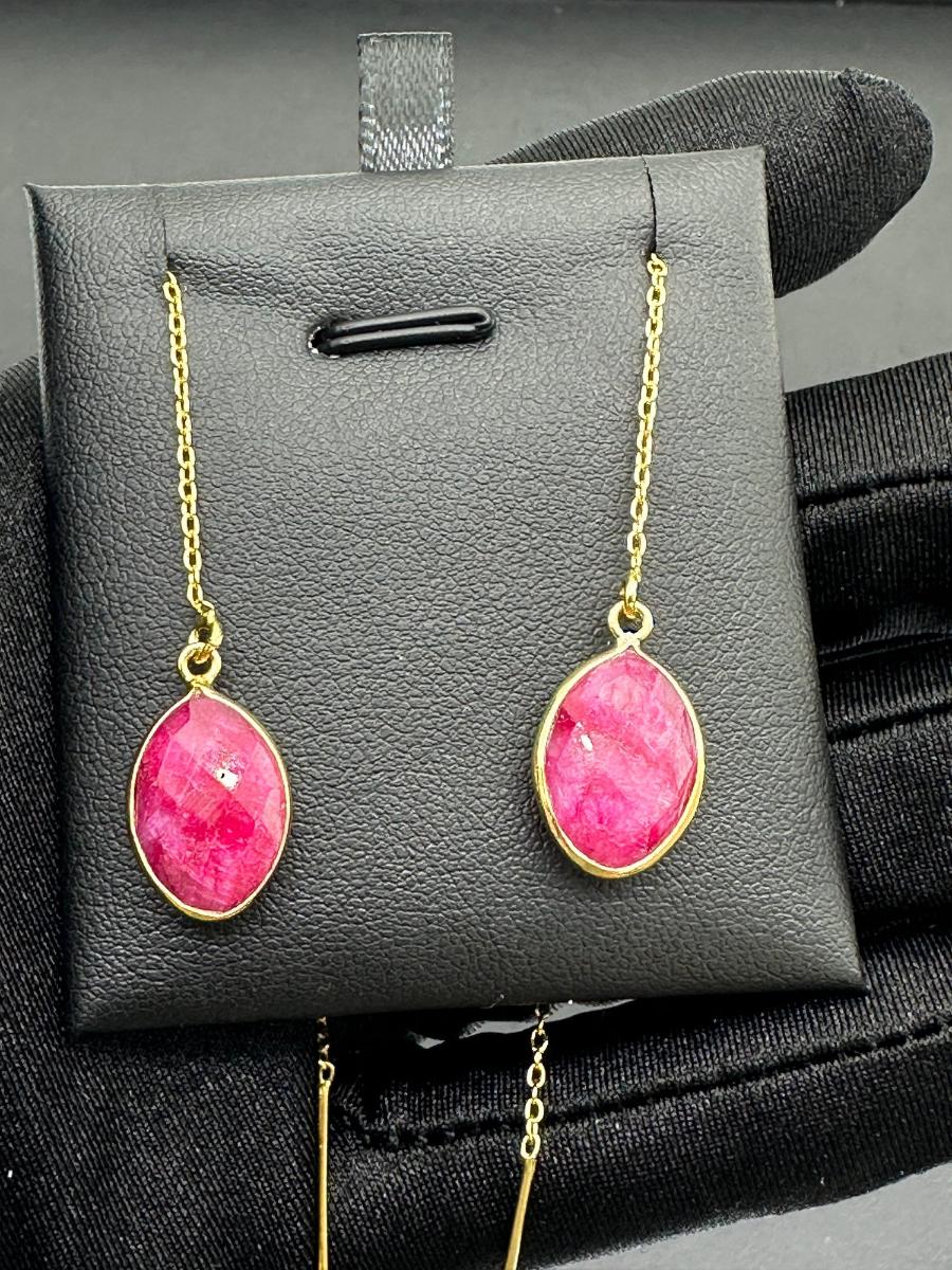 Earrings 925 Silver-Tone, Gold-Plated Natural Ruby Gemstone