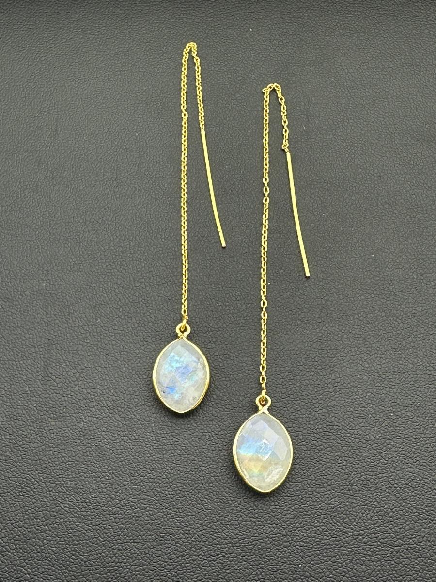 Earrings 925 Silver-Tone, Gold-Plated Natural Moonstone Gemstone