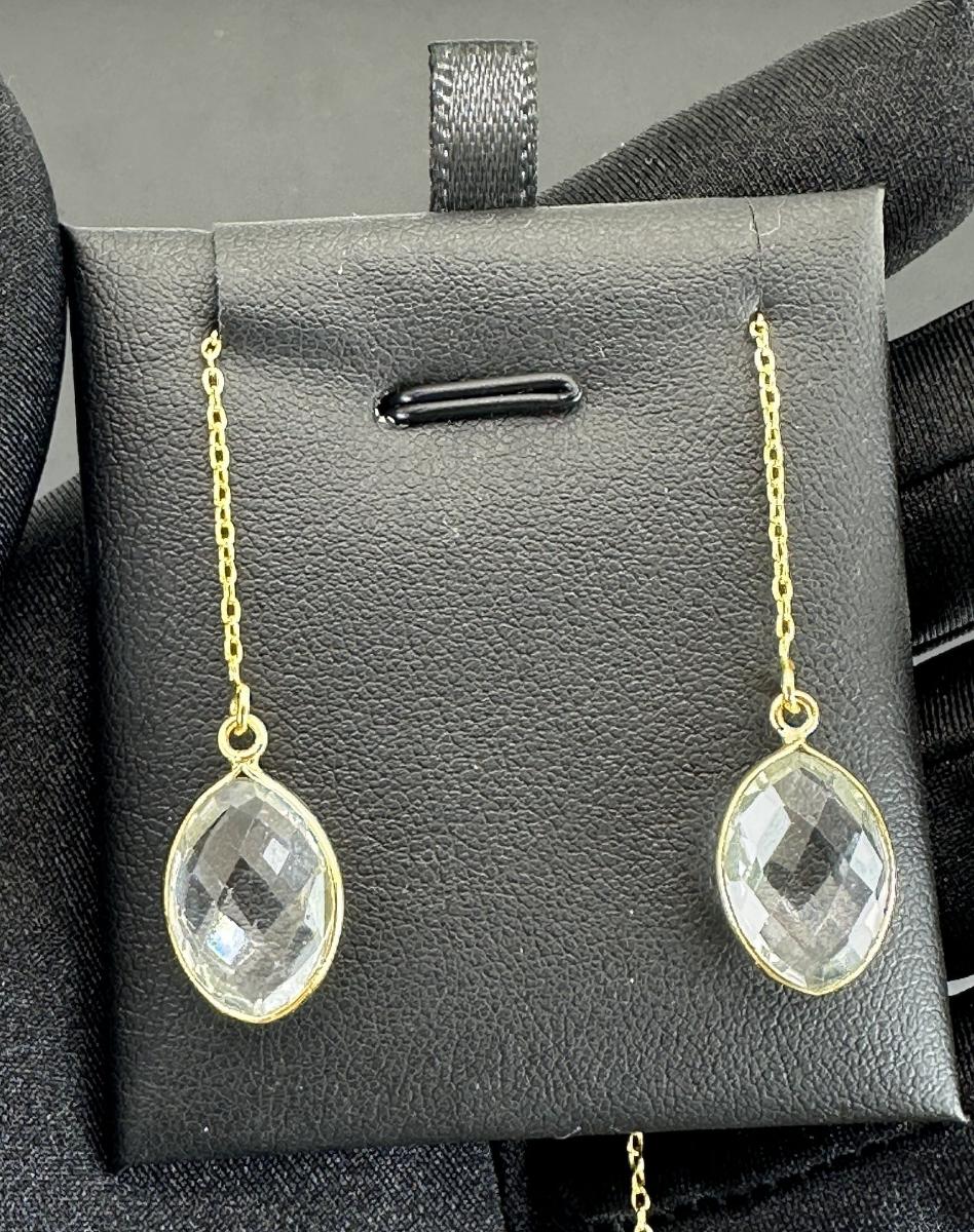 1. Earrings 925 Silver-Tone Gold-Plated Natural Clear Quartz Gemstone