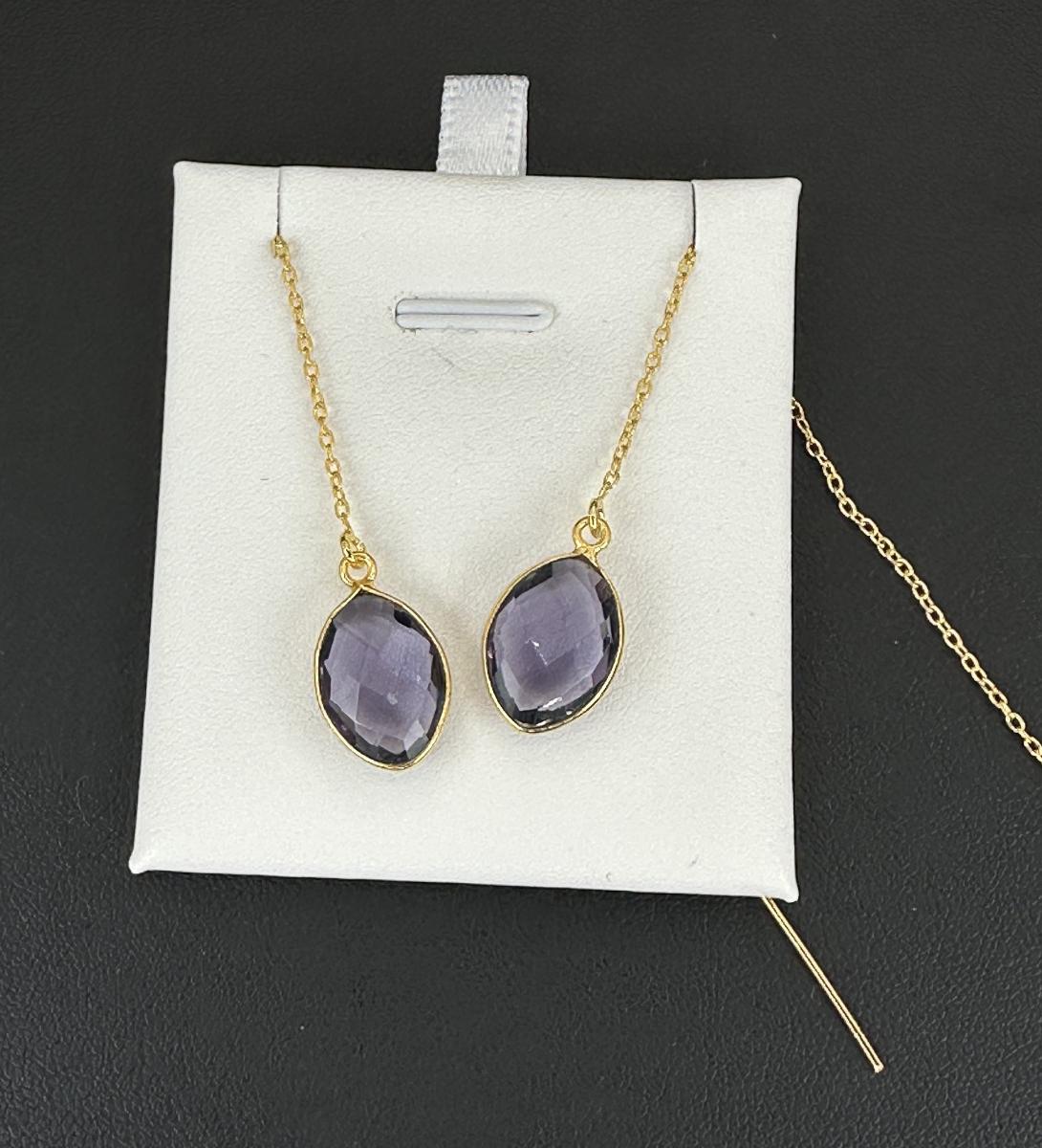 Earrings 925 Silver-Tone, Gold-Plated Natural Amethyst Gemstone