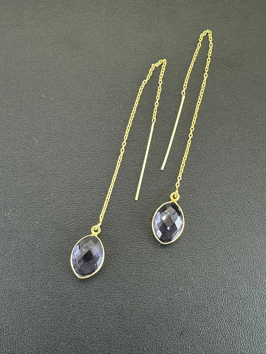 1. Earrings 925 Silver-Tone Gold-Plated Natural Amethyst Gemstone