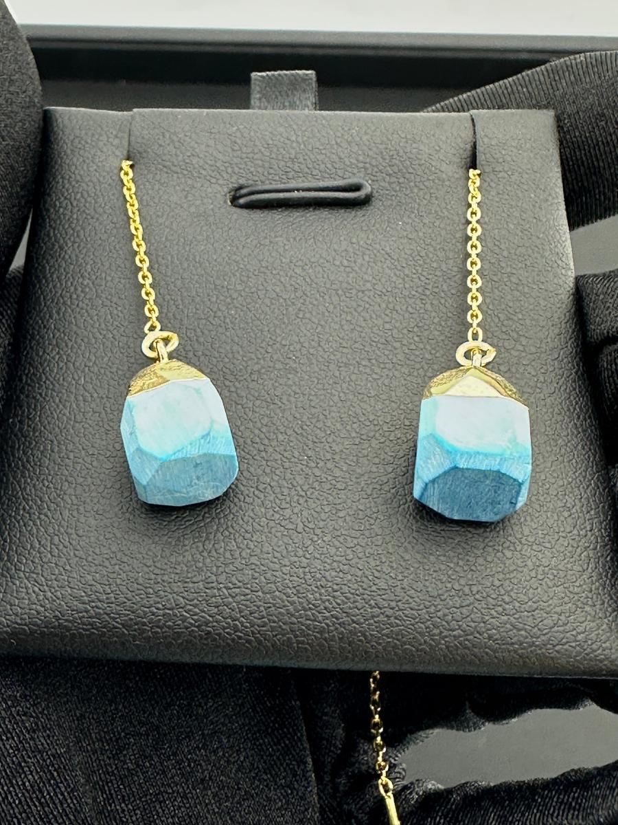 Earrings 925 Silver-Tone, Gold-Plated, Natural Raw Turquoise Gemstone