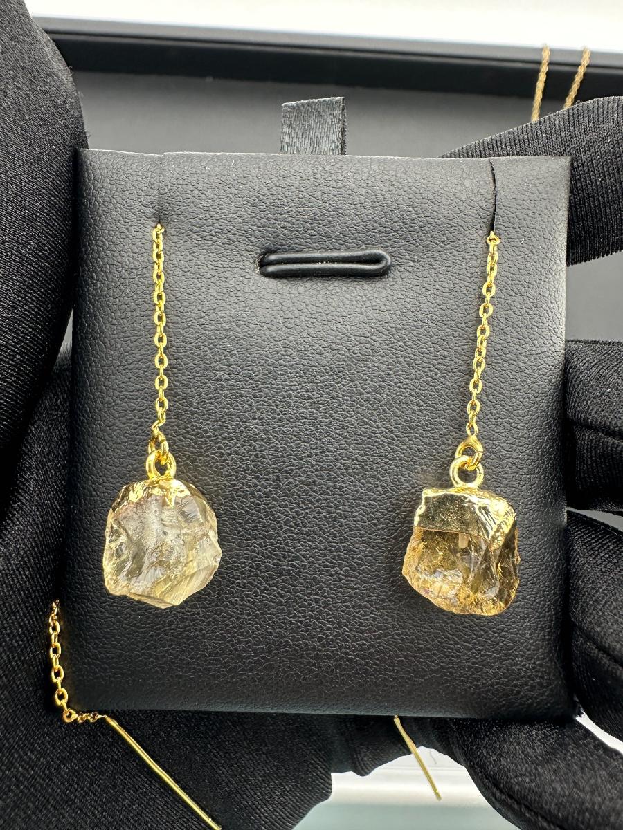 Earrings 925 Silver-Tone, Gold-Plated, Natural Raw Citrine Gemstone