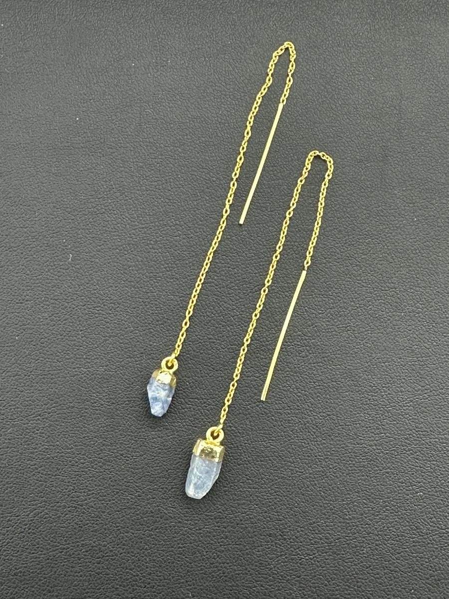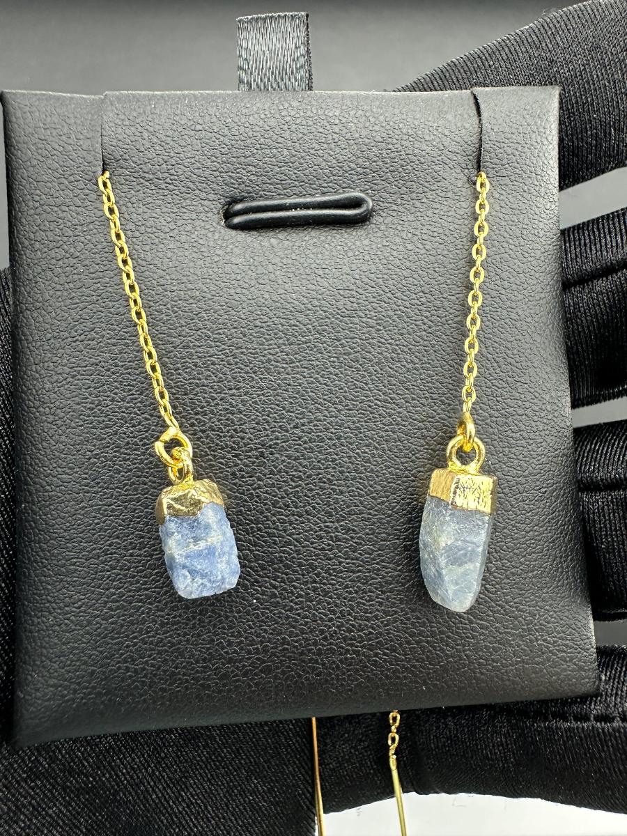 1. Earrings 925 Silver-Tone Gold-Plated Natural Raw Blue Sapphire Gemstone. This piece is unmarked. We were informed it is silver with gold plating; however the exact metal composition has not been independently verified.