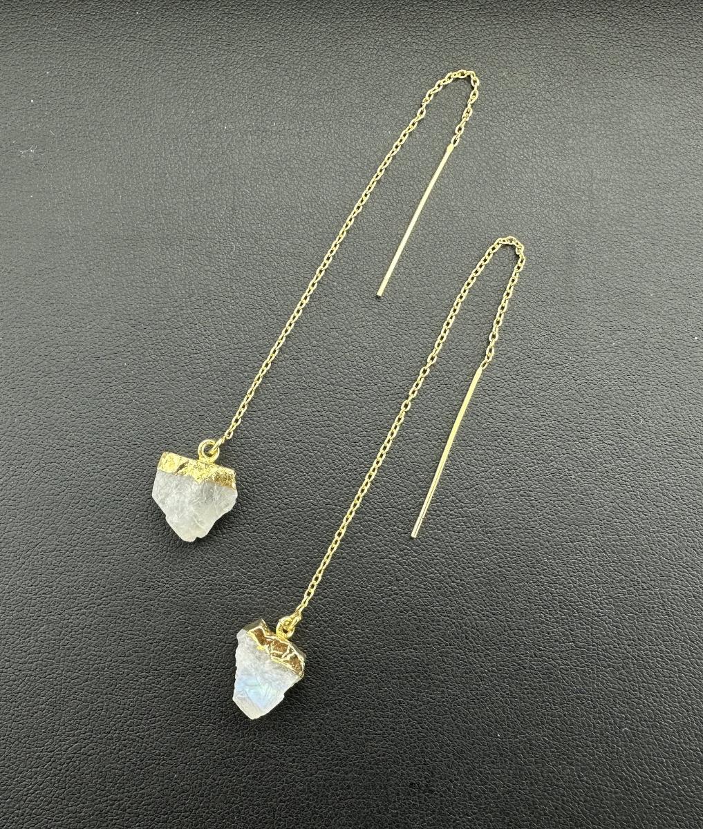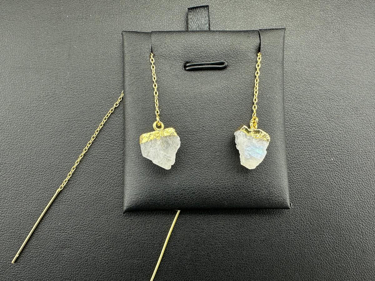 Earrings 925 Silver-Tone, Gold-Plated, Natural Raw Moonstone Gemstone