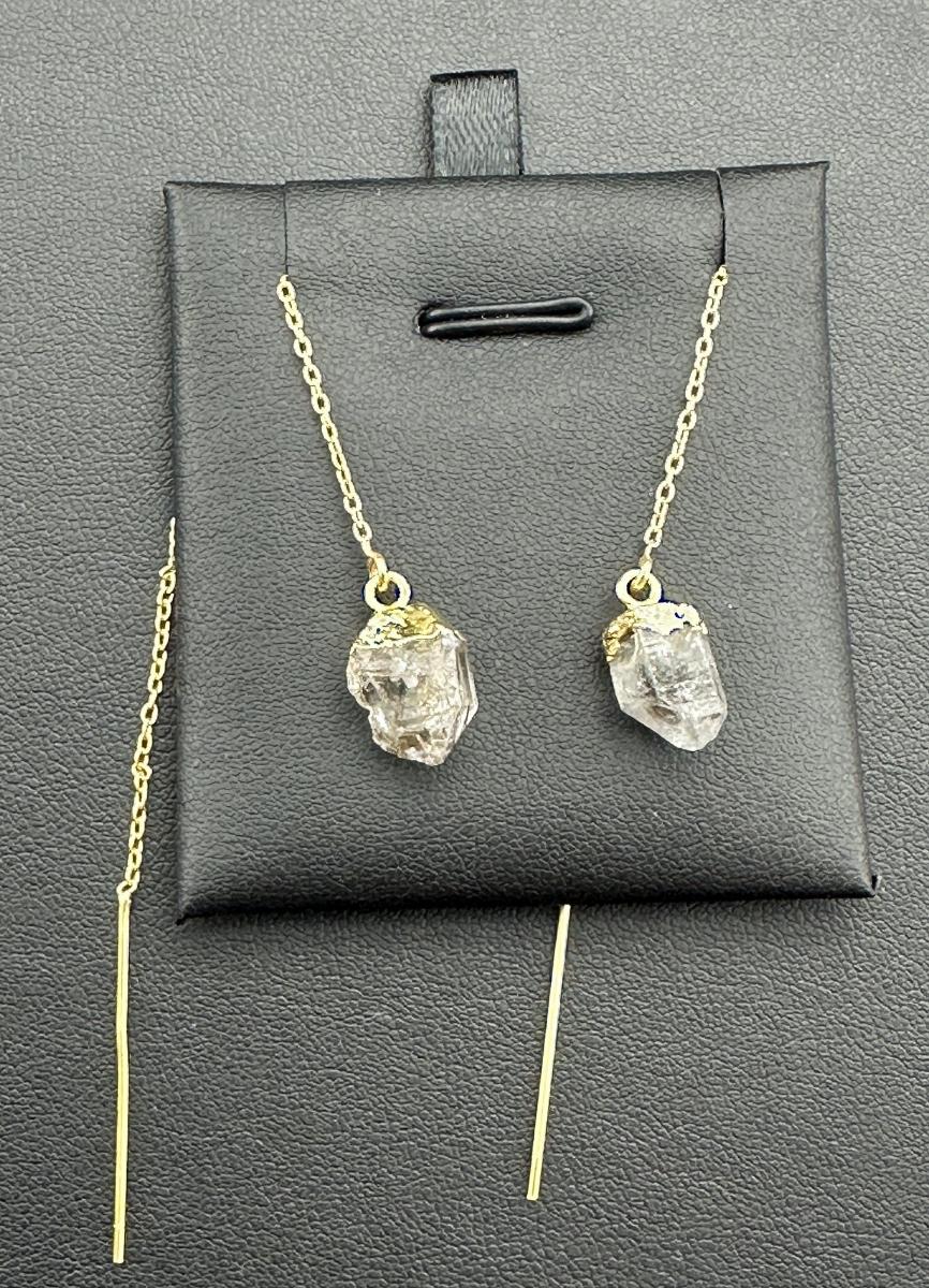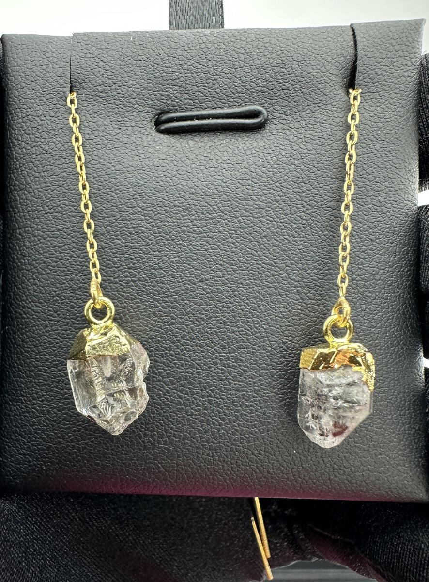 1. Earrings 925 Silver-Tone Gold-Plated Natural Herkimer Diamond Gemstone. This piece is unmarked. We were informed it is silver with gold plating; however the exact metal composition has not been independently verified.
