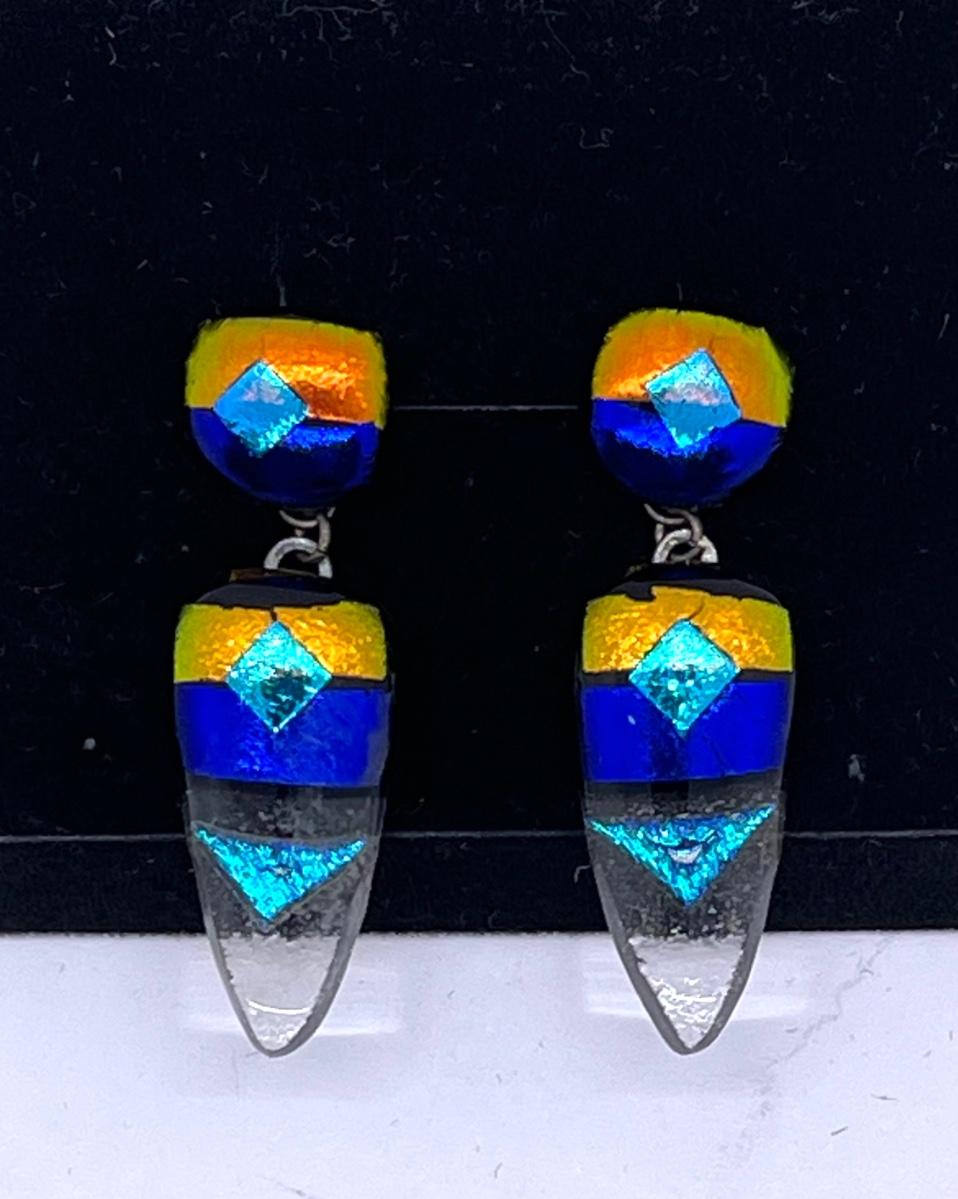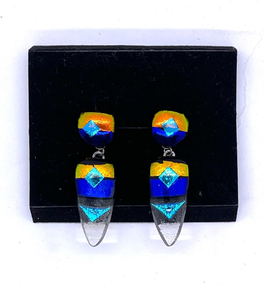 Colorful Metallic Enamel Dangle Drop Earrings. For pierced ears.