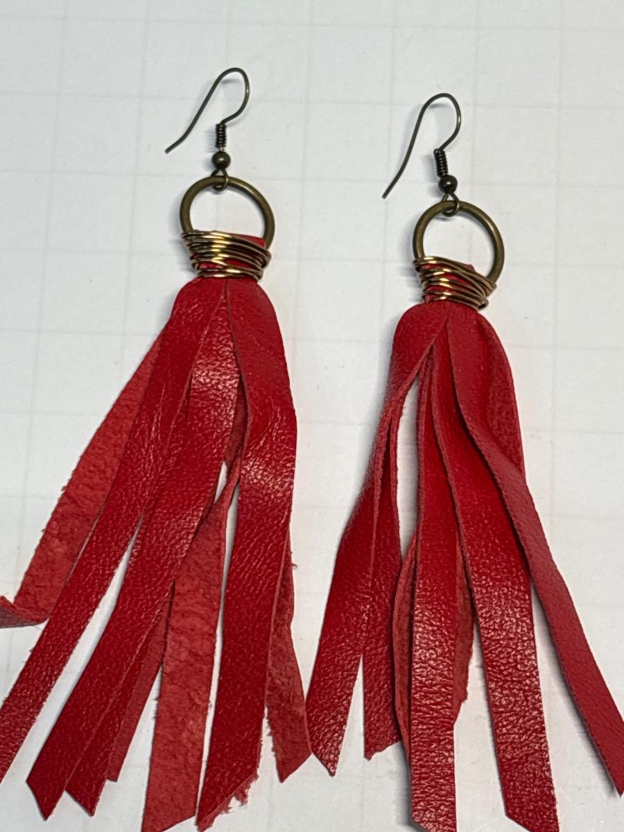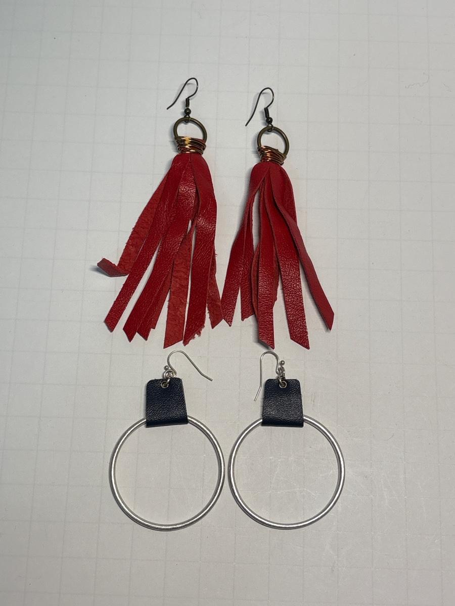 Earrings with leather embellishments