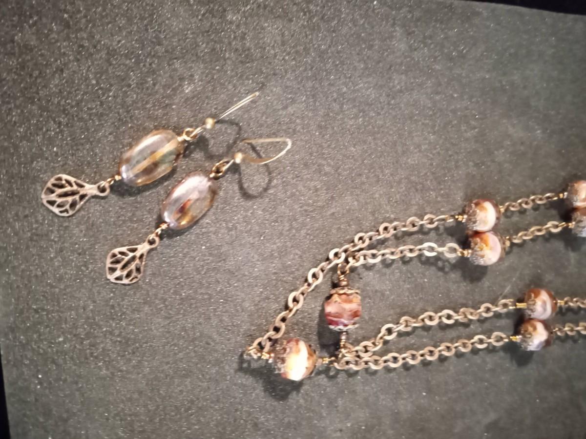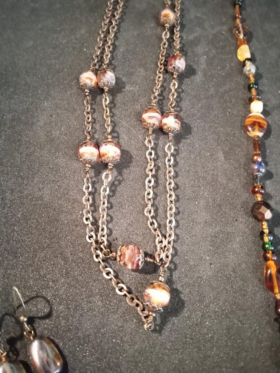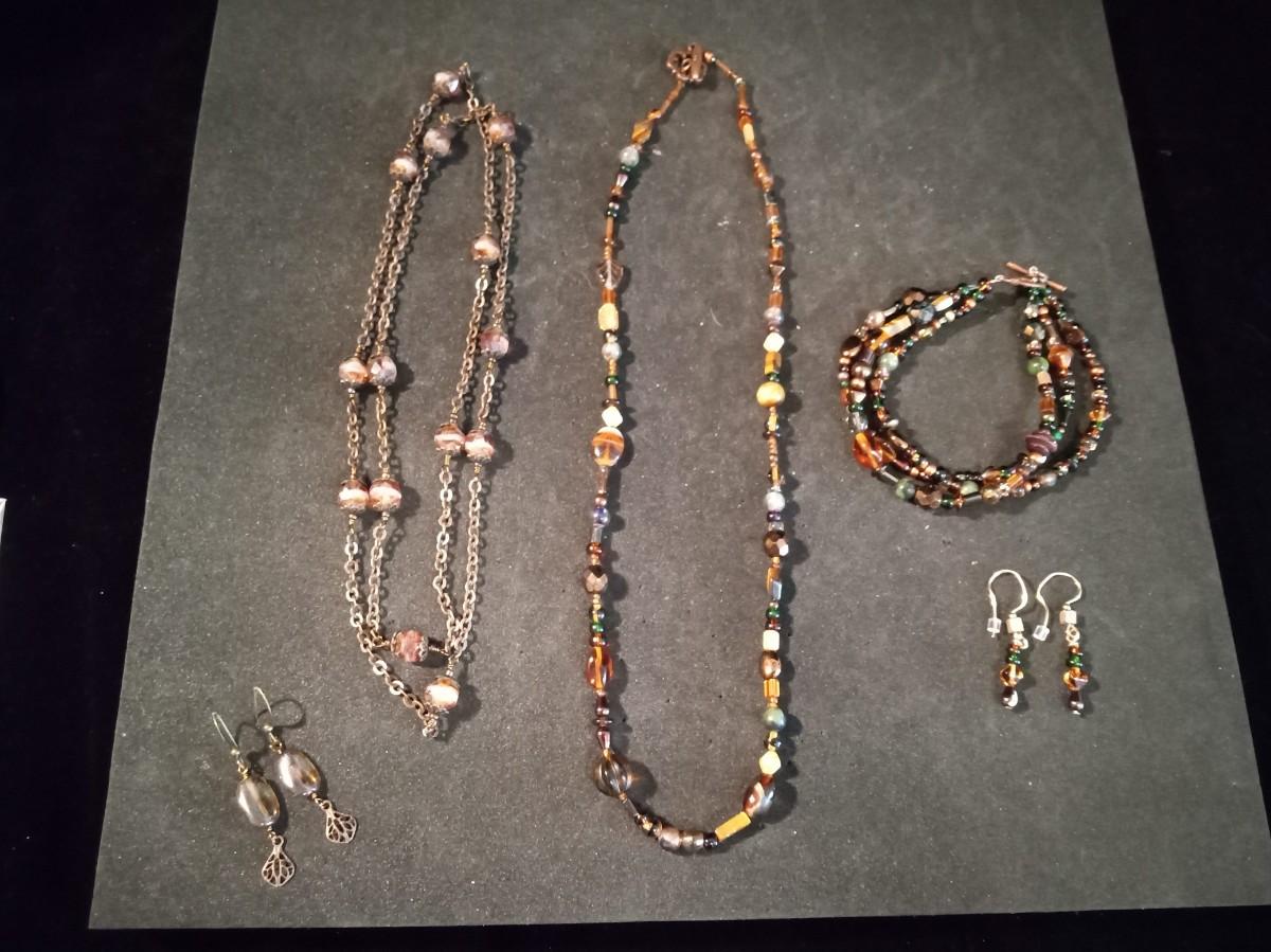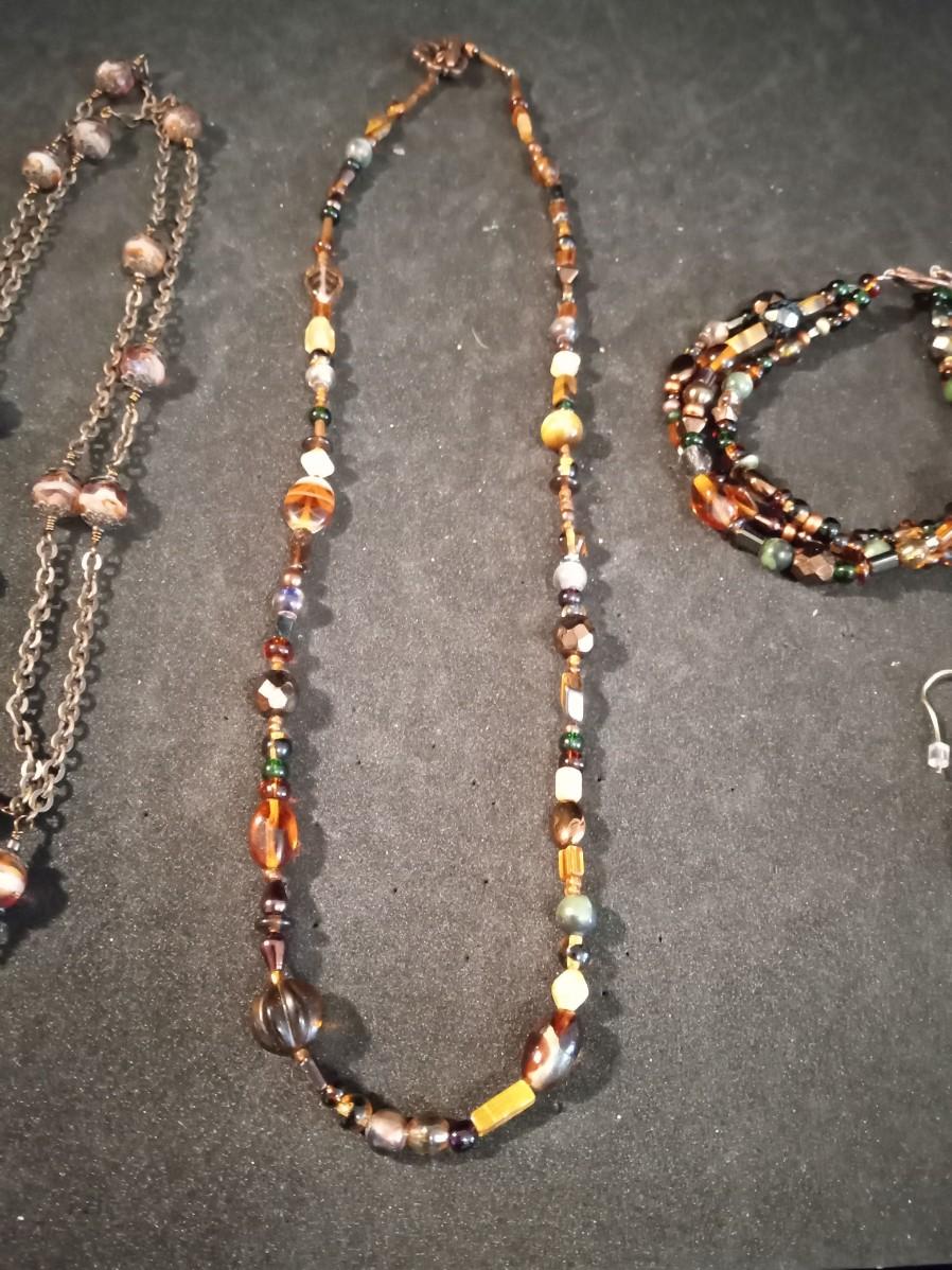 EARTH TONE GLASS BEADED NECKLACES, BRACELET AND EARRINGS