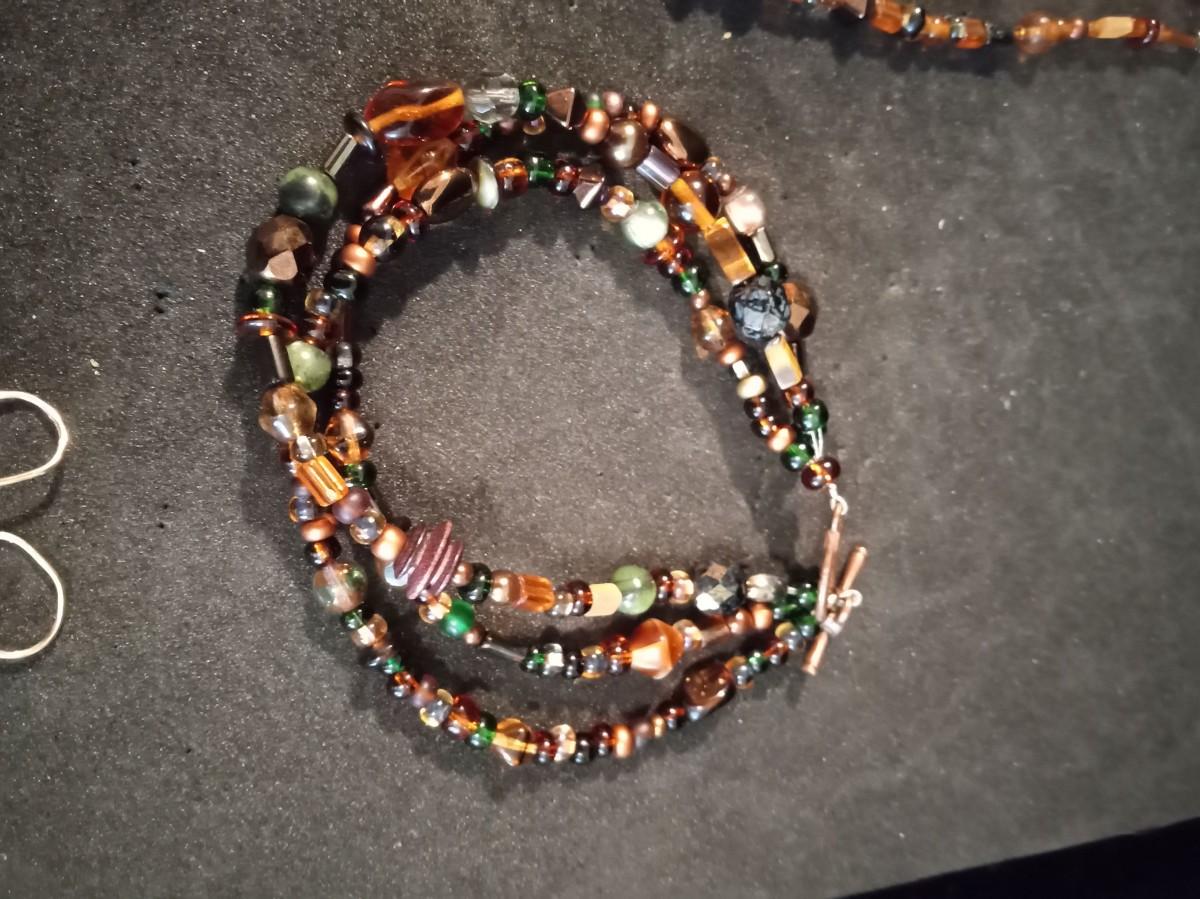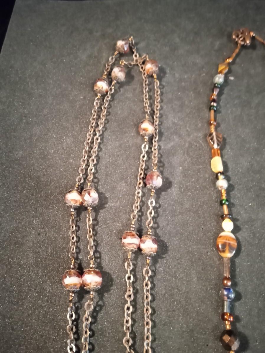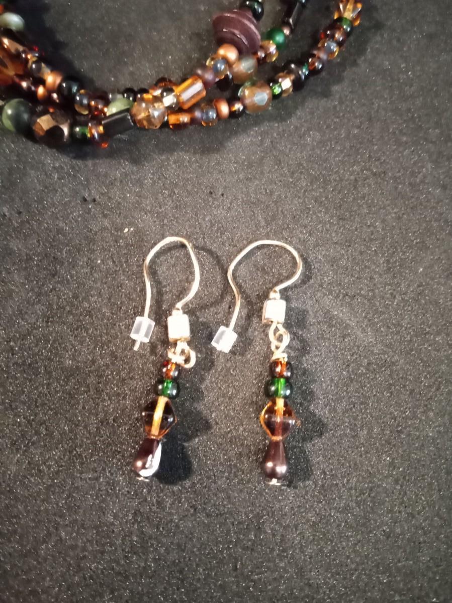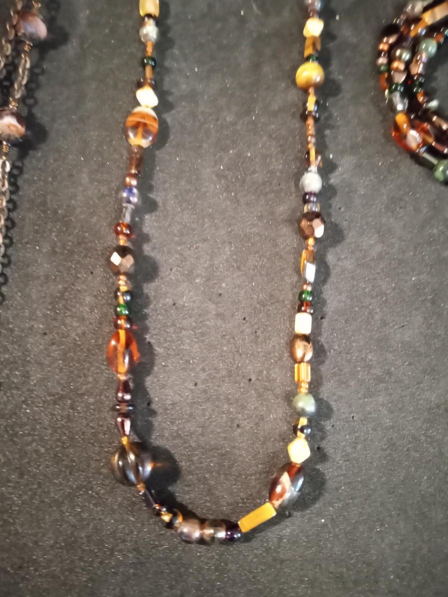 EARTH TONE GLASS BEADED NECKLACES, BRACELET AND EARRINGS