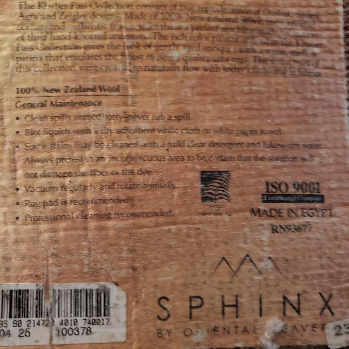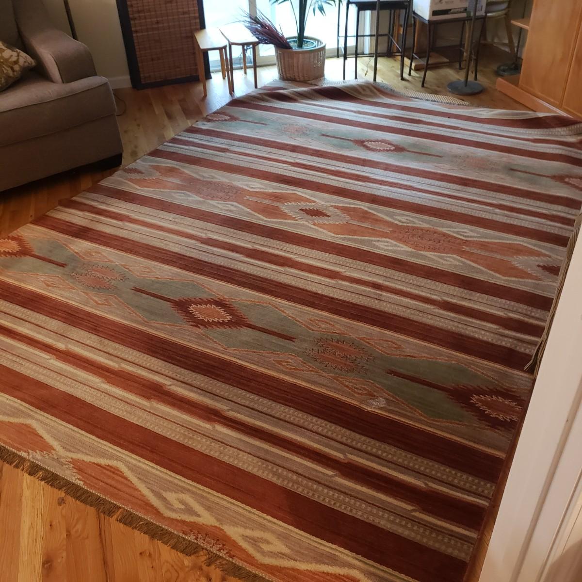 This is a 7'7" x 11' Egyptian made area rug. It has a Southwest feel to the colors and pattern. See pictures for details.