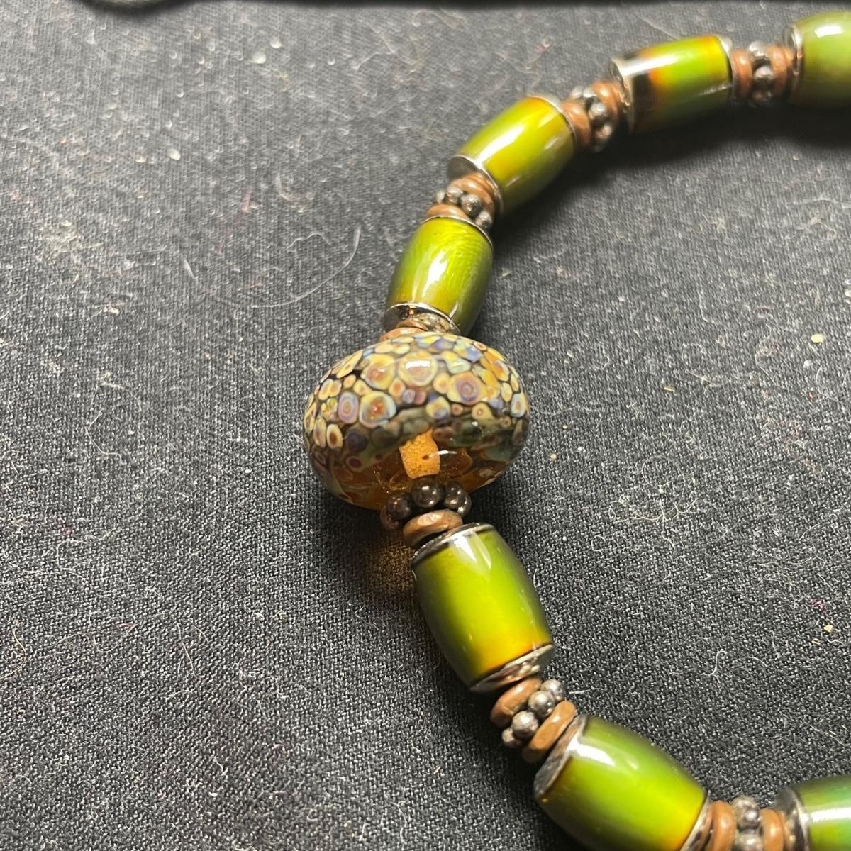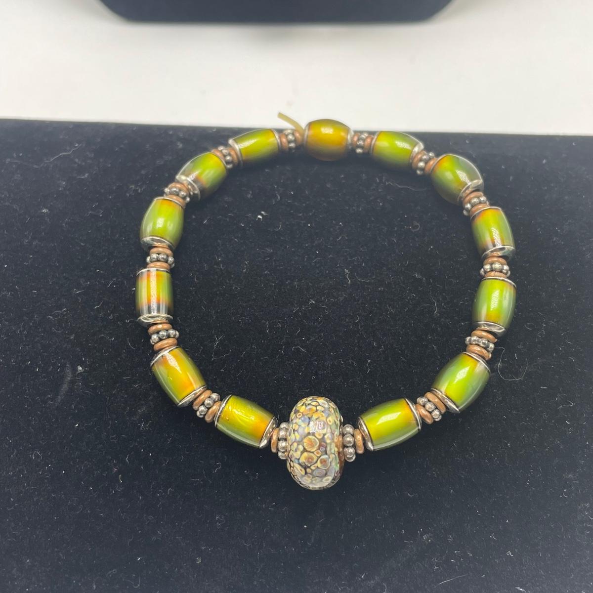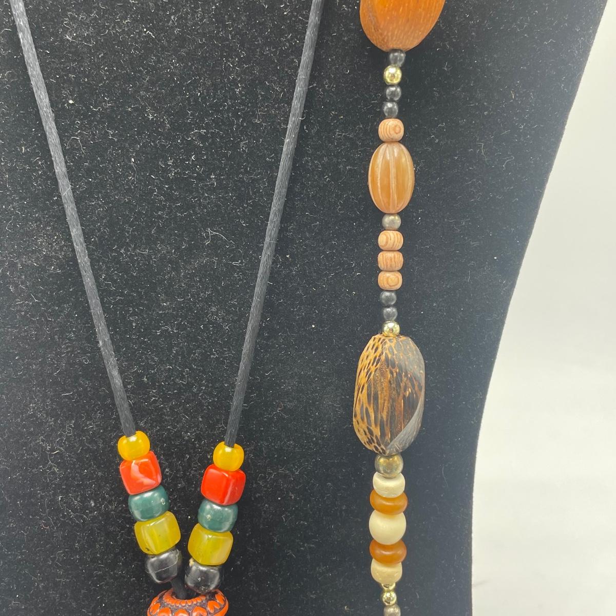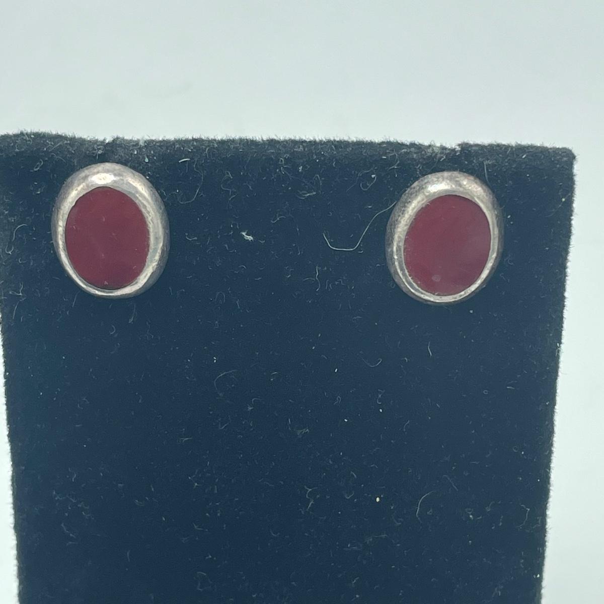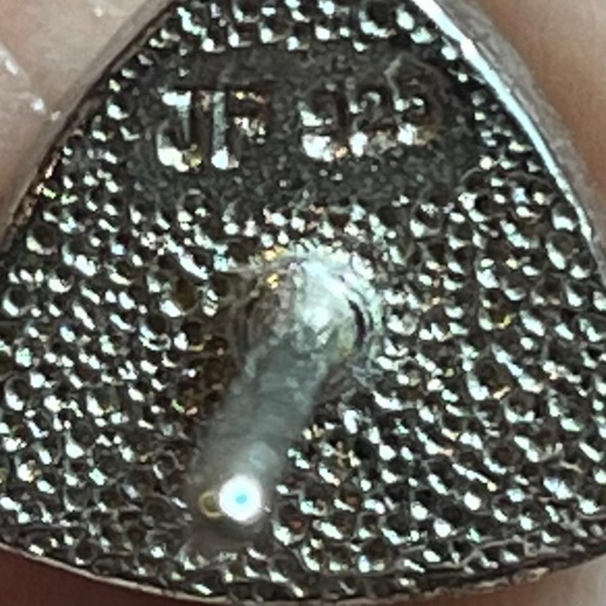 Four out of five of these pairs of earrings (for pierced ears) are marked 925. Square earrings are not. Also included is an adorable bird shaped brooch that is wooden with copper wire legs, three necklaces and a bead/stone bracelet that has some elastic in the band. One necklace is all stones/beads, the other two have corded chains. Longest necklace measures 30”.