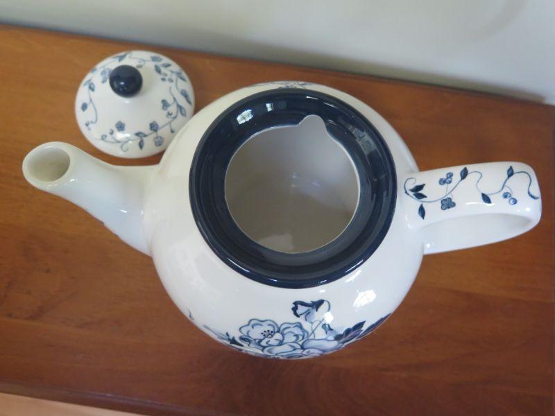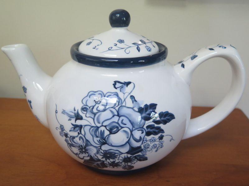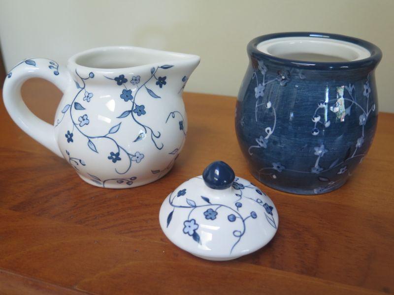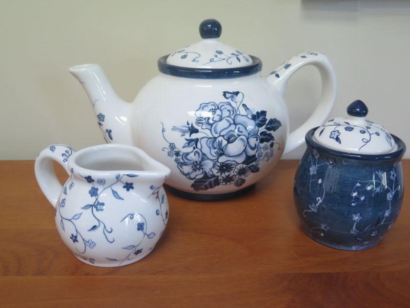 Earthenware Lang & Wise Floral Blues Tea Pot, Creamer and Sugar