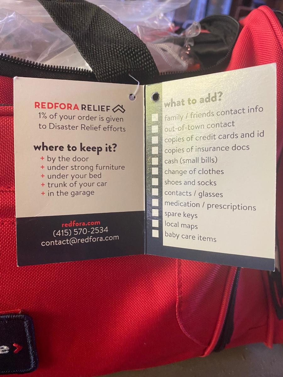 Redfora Earthquake Kit. Has not been checked for all contents.