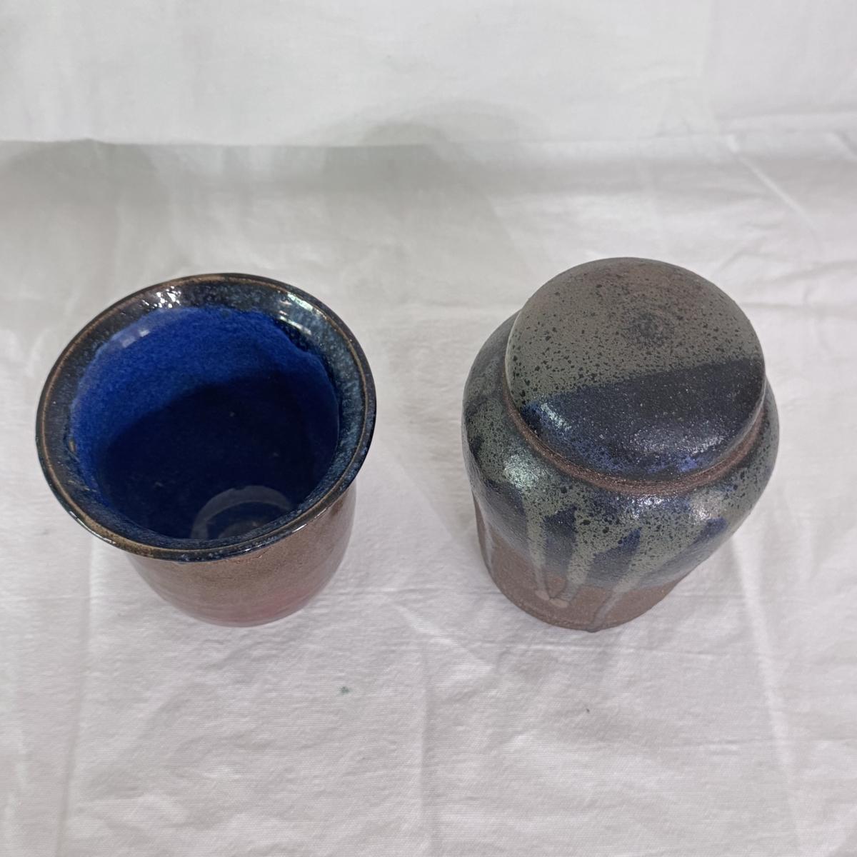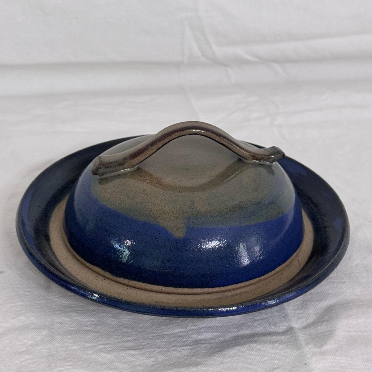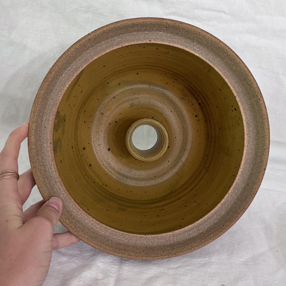 This lot includes five pieces of pottery in earth-tones. You’ll find one teapot with a lid, one Bundt cake dish with lid, one serving plate with a removable lid, one jar with lid, and one vase. Please see pictures for signatures. The Bundt cake dish measures 9.5”D x 4.5”H. Shipping available.