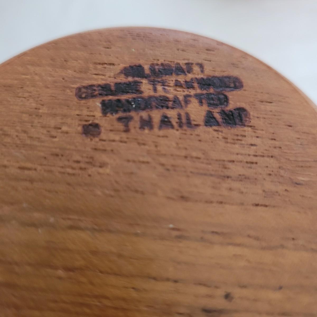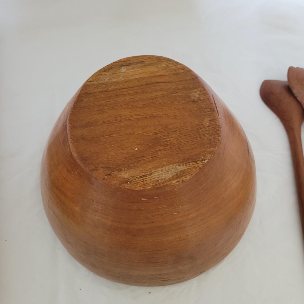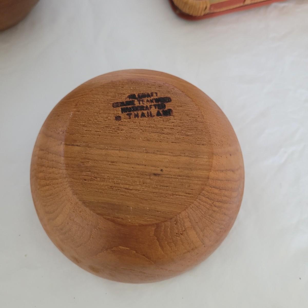 This collection of serveware includes a large wooden serving bowl with utensils, four wooden salad bowls made in Thailand, a Japanese serving tray, and two amber colored footed glass dishes. Large bowl measures approximately 10”D x 6”H. Shipping available.