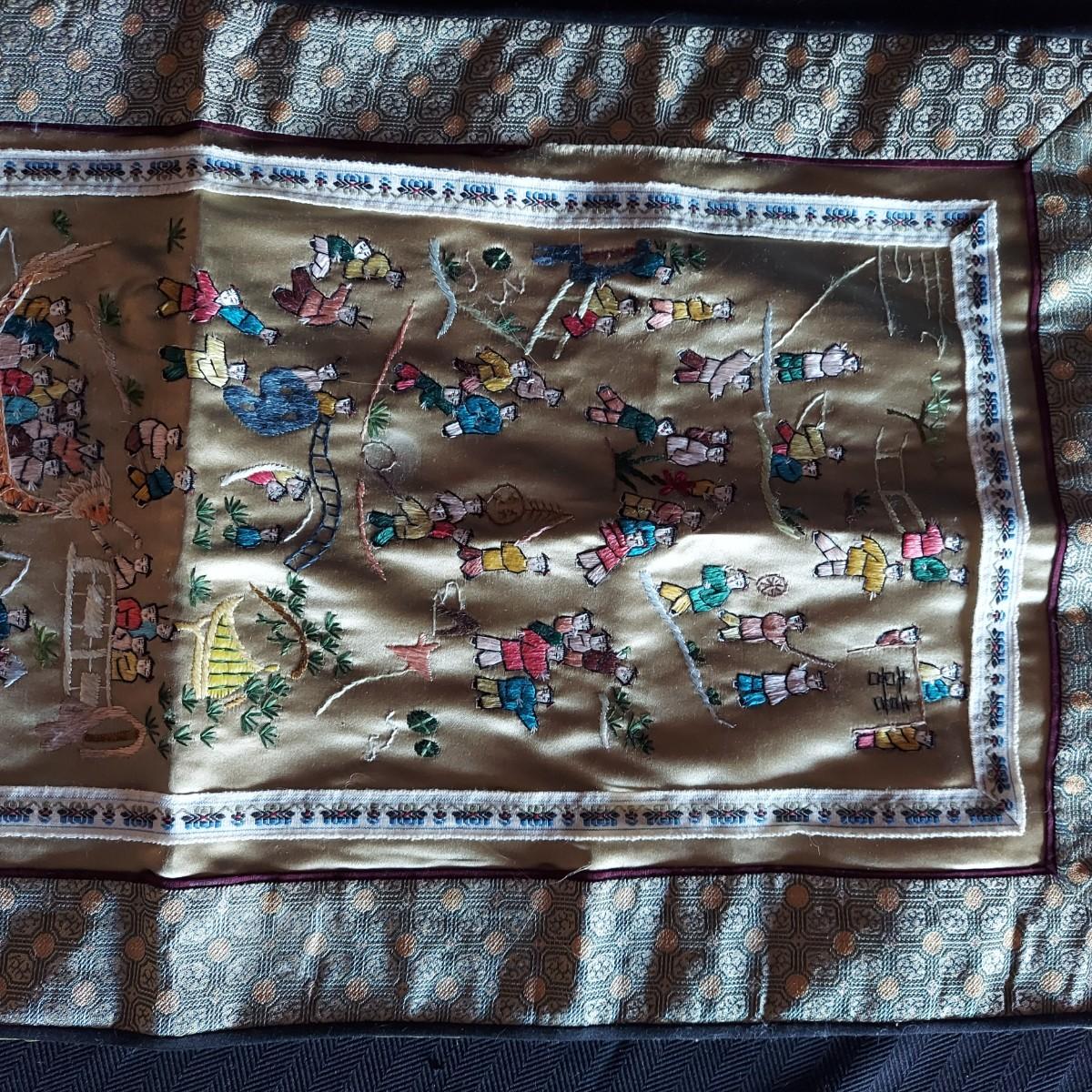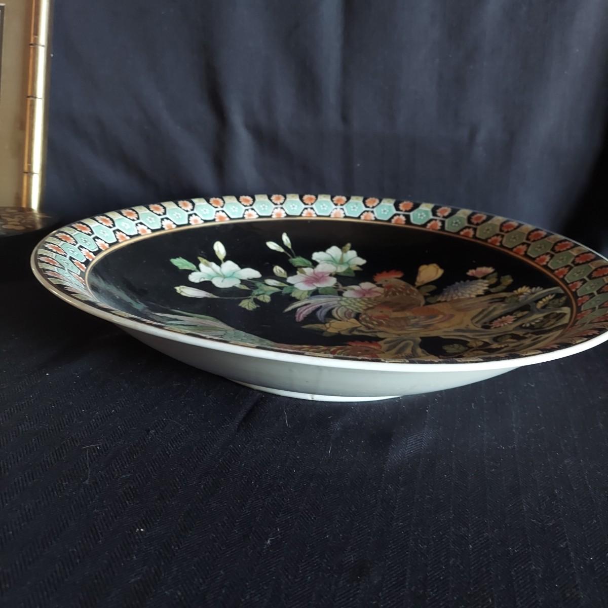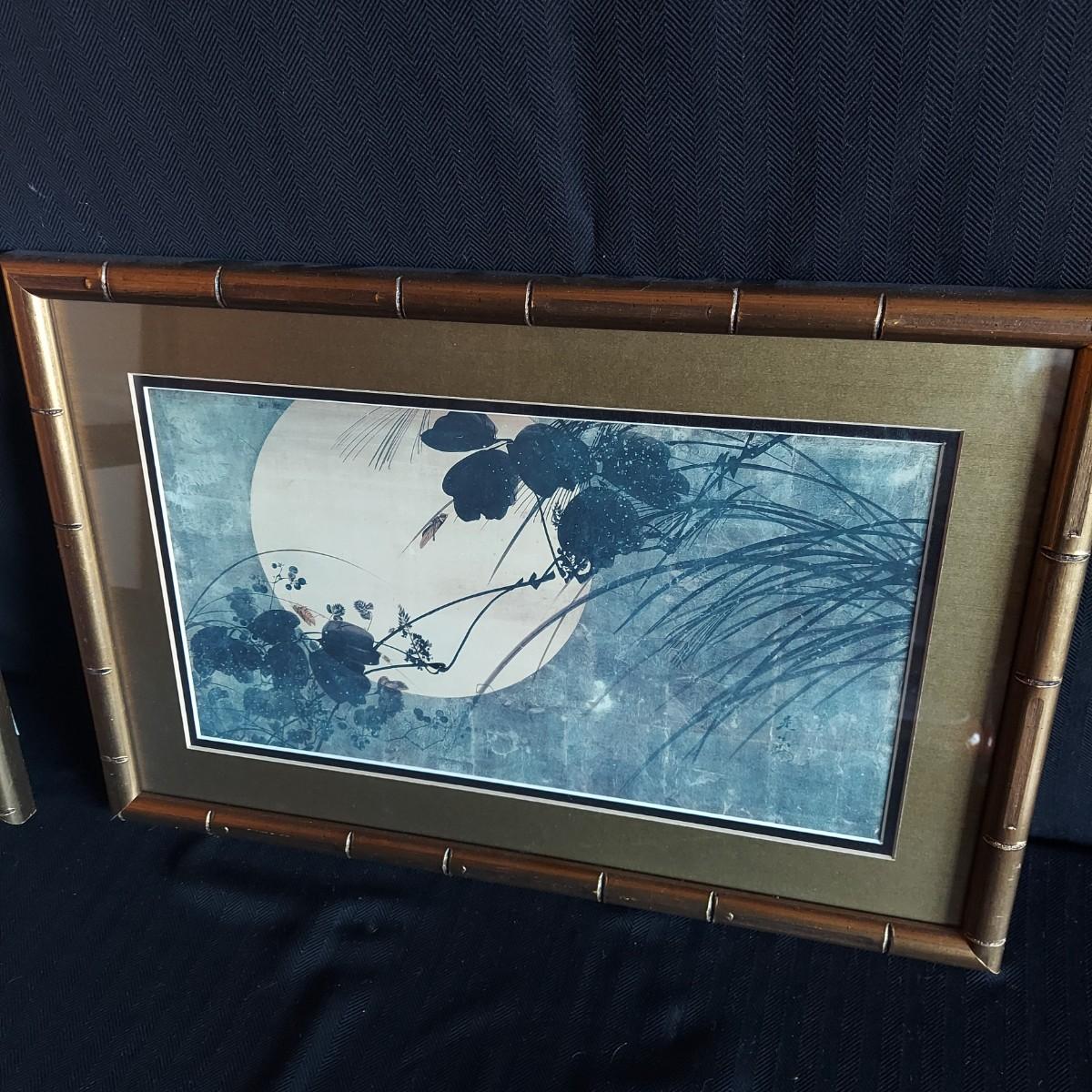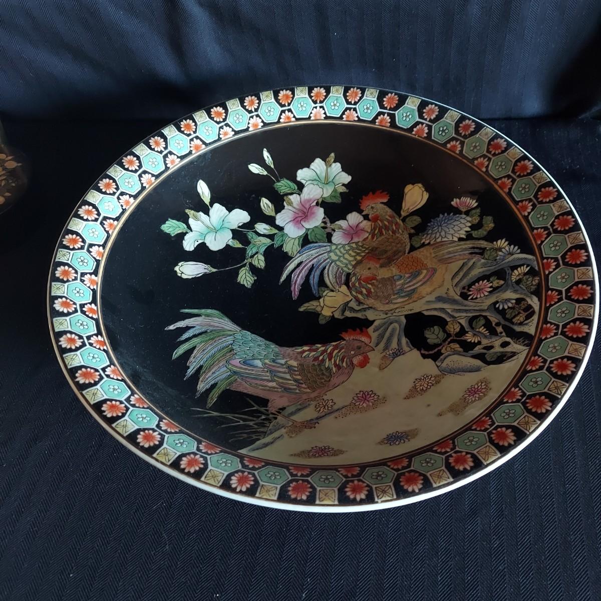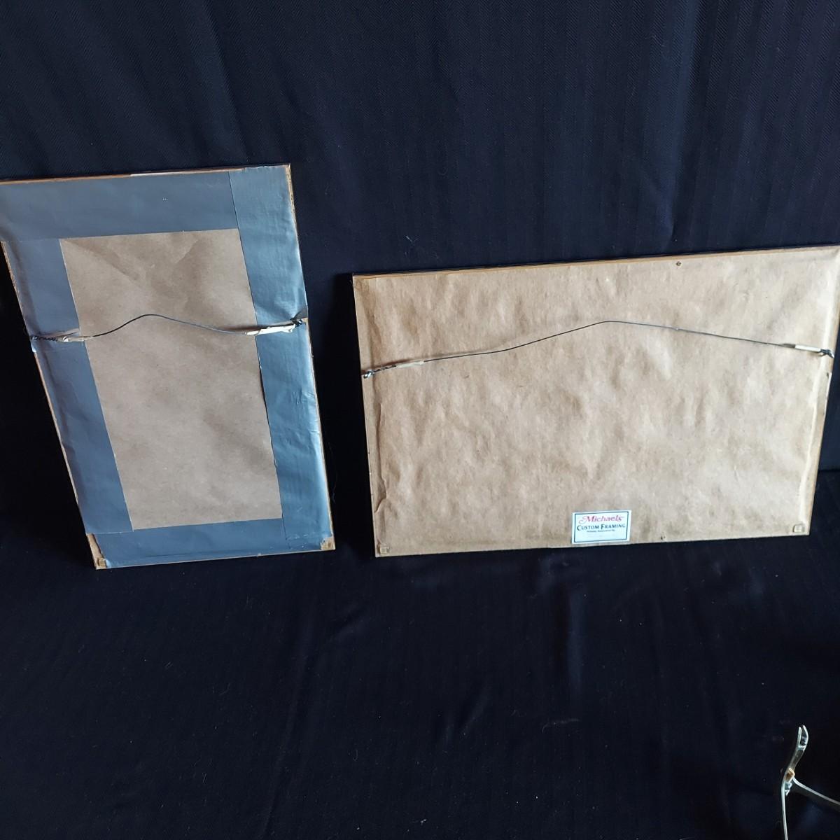 Two pieces of framed and matted artwork in faux bamboo style wooden frames. They measure 10” x 16”H and 18” x 12”H. Also includes a large rooster platter with metal stand and several small pieces of decor. The coaster container has some chips. The silk like textile has a tear. Please see photos for details. Shipping available.