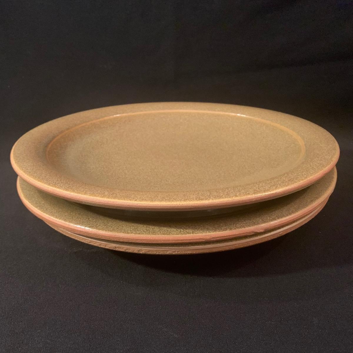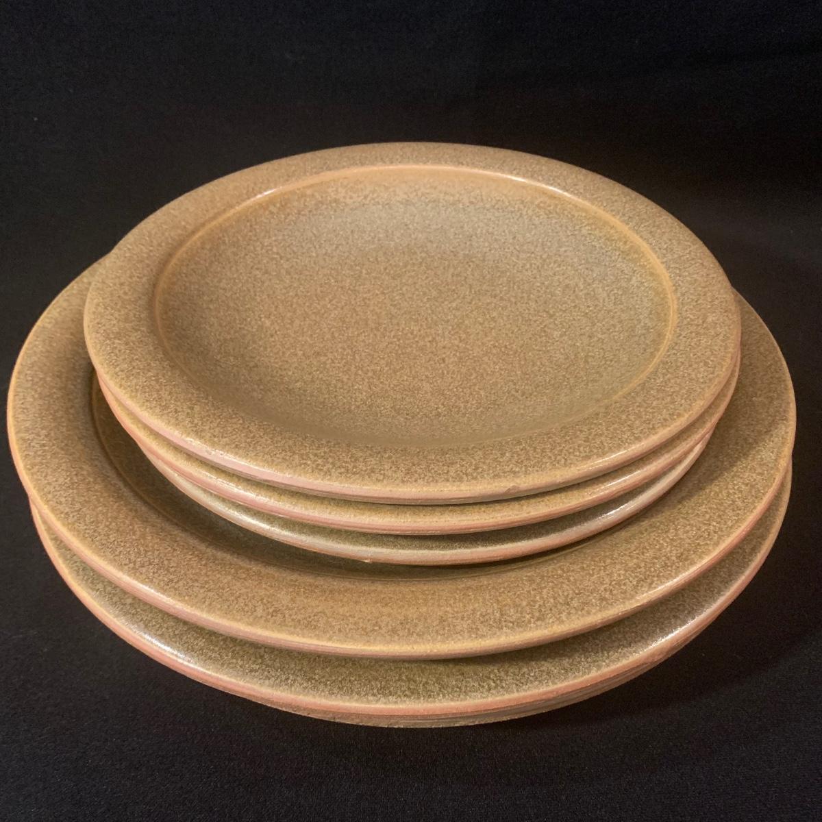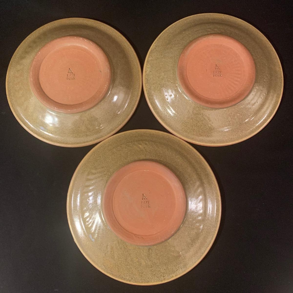This lot includes original pieces by local artist Alex Matisse. Each piece is hand thrown, wood-kiln fired, and stamped, “AM East Fork." This is the personal stamp of lead potter and founder Alex Matisse of East Fork Pottery used circa 2011-2014. Lot includes three salad plates and three dinner plates. Salad plates measure, 9”D x 1.25”H and dinner plates measure, 11”D x 1.5”H.