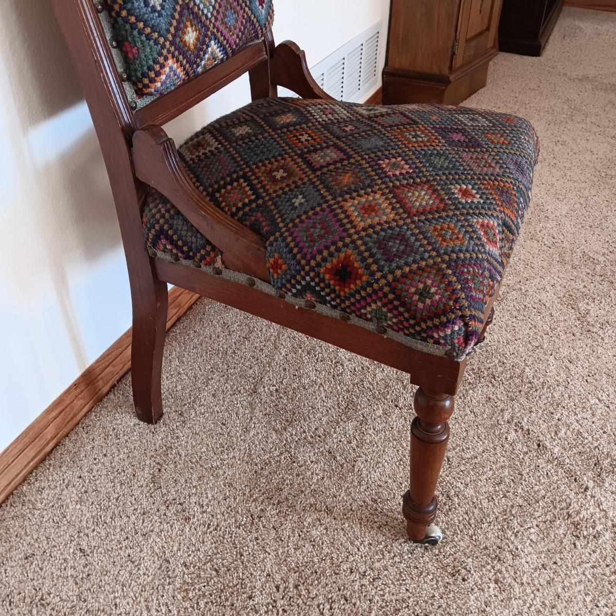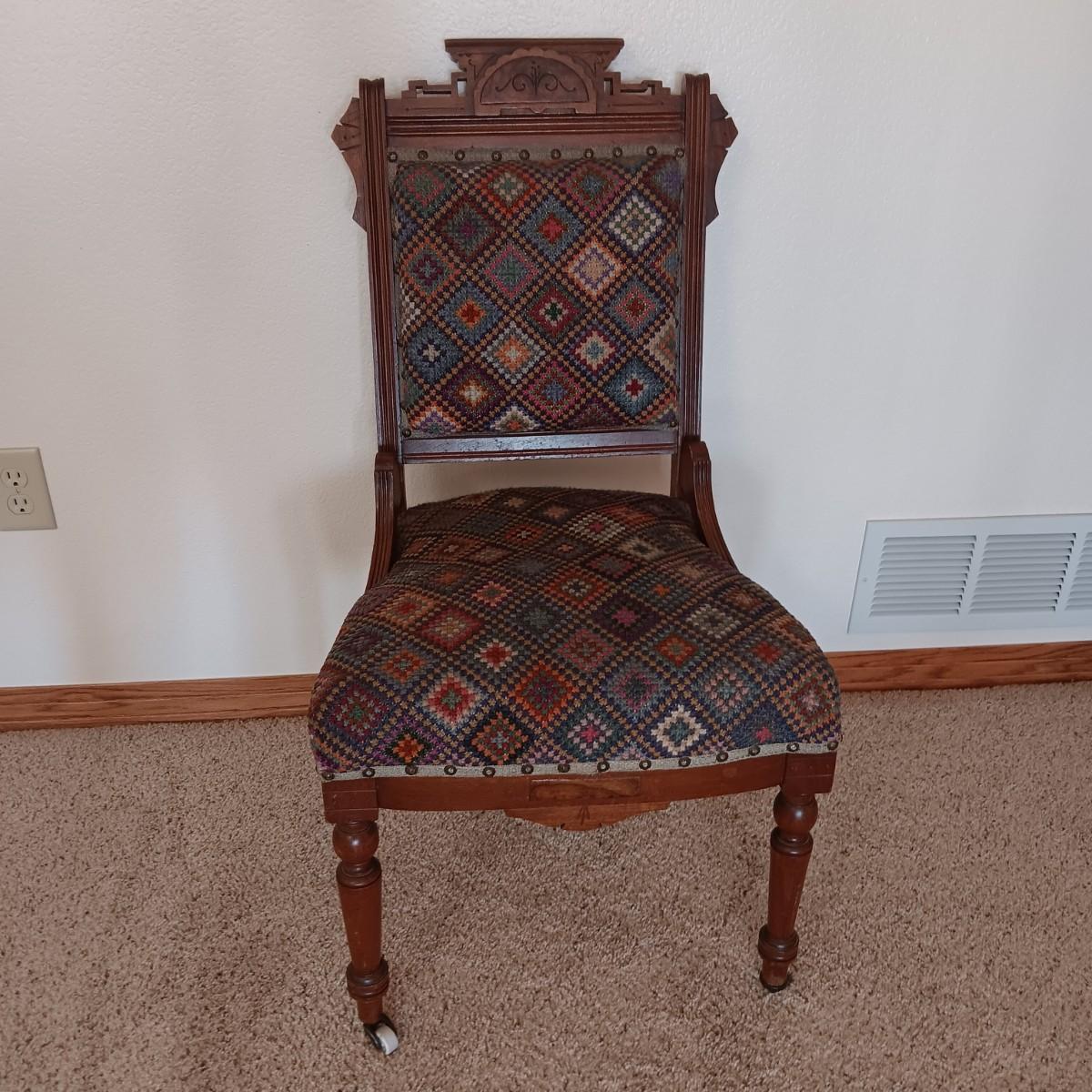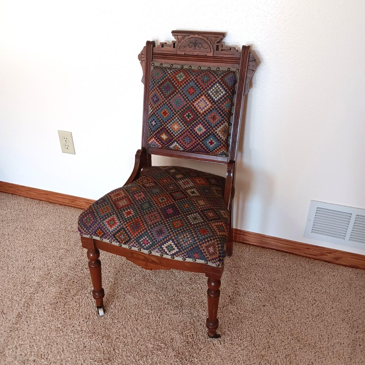 EAST LAKE ANTIQUE CHAIR WITH UPHOLSTERED BACK AND SEAT