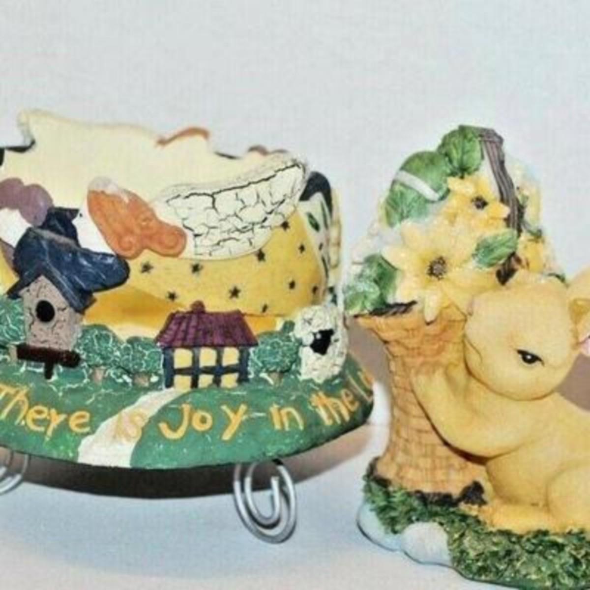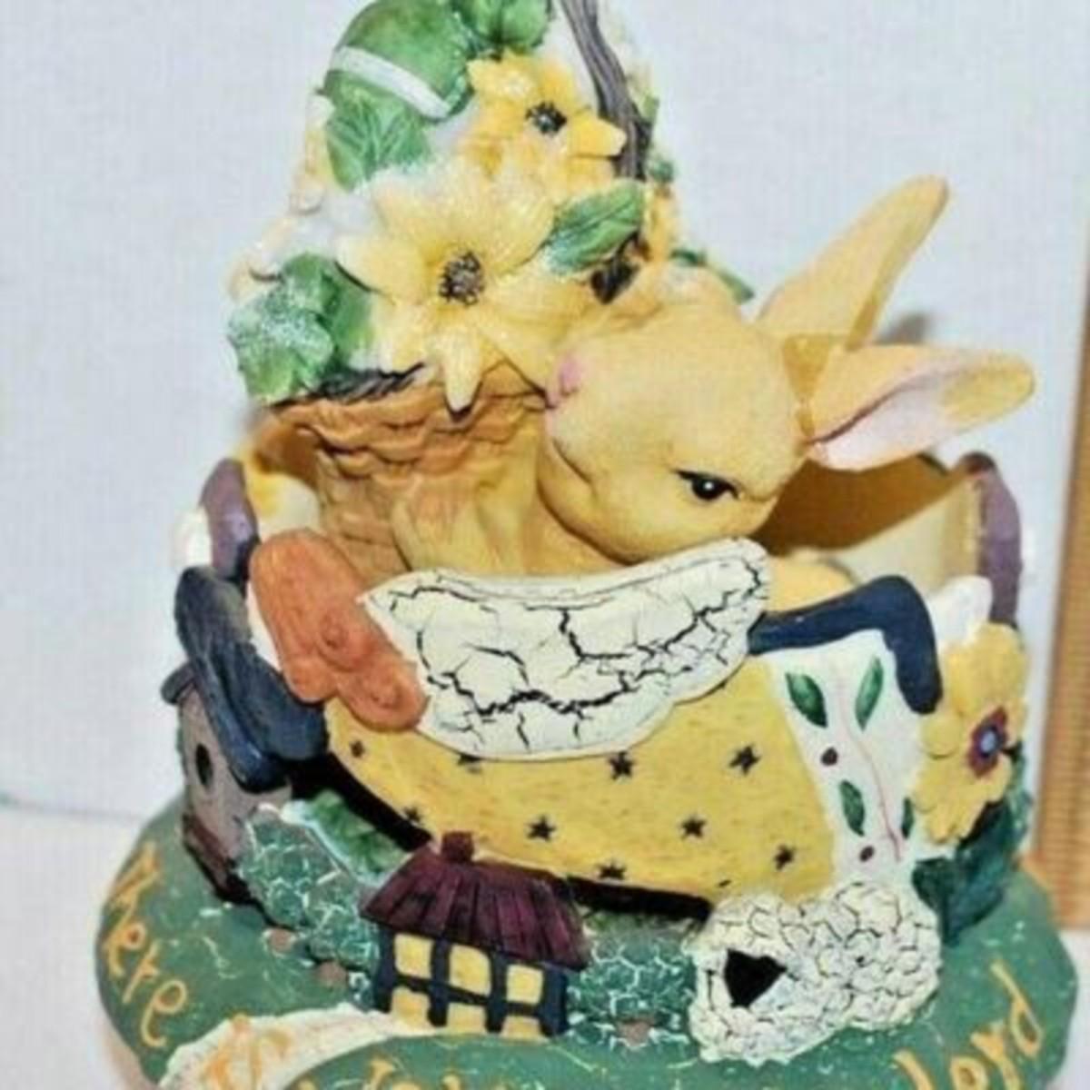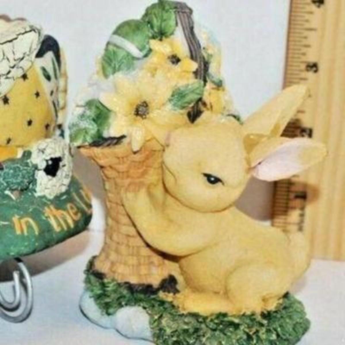 Bunny Planter AND Bunny Figure Combination-- "Joy in the Lord & "Springy" Green and Yellow Display Decorations