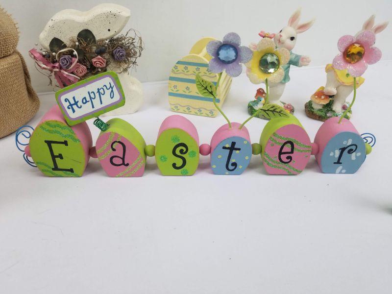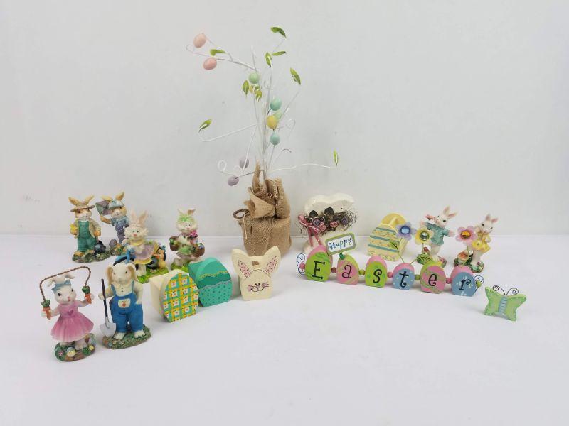 Easter Decor. Mostly Wooden, plus Easter Egg "Tree" plus 8 Figurines