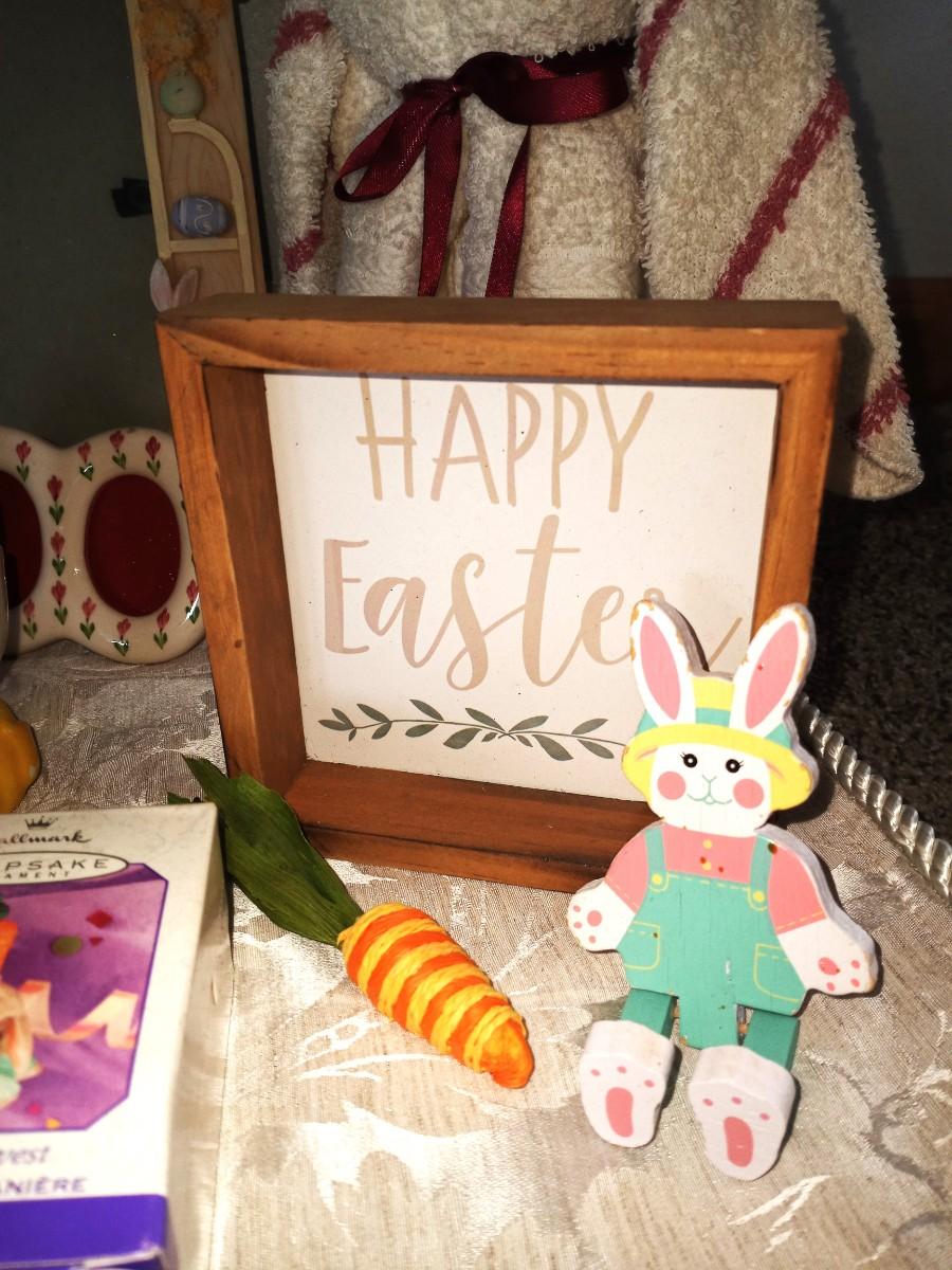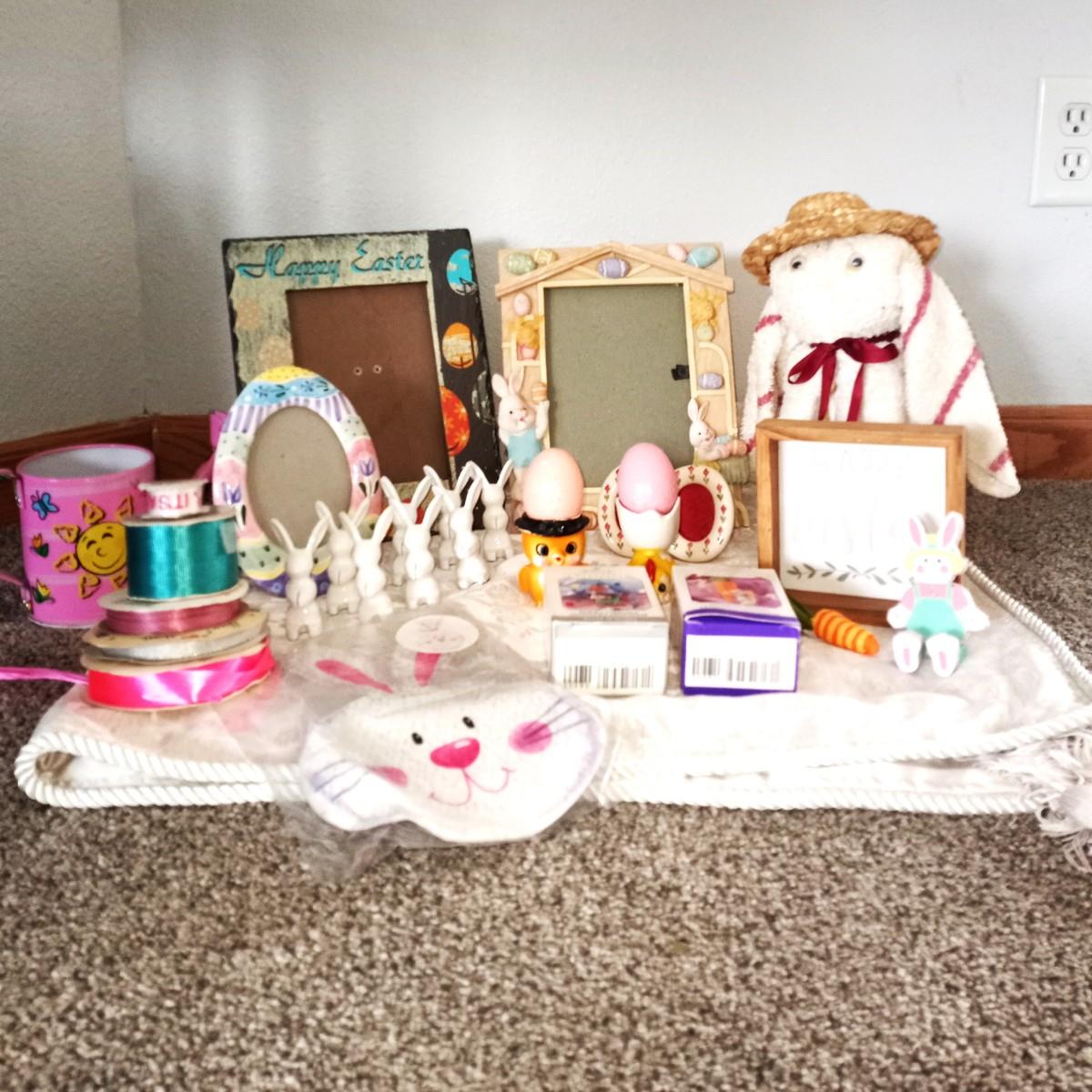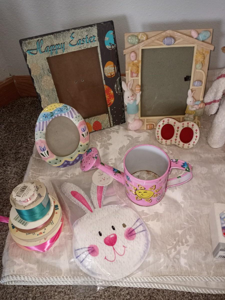 HALLMARK ORNAMENTS-COLLECTABLE CHICK EGG HOLDERS-BUNNY MADE OUT OF HAND TOWELS-BUNNY NAMEPLACE HOLDERS-EASTER PHOTO FRAMES AND MORE
