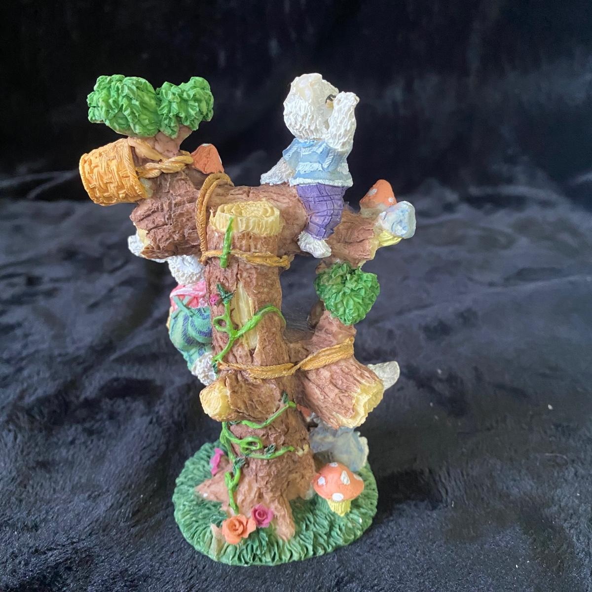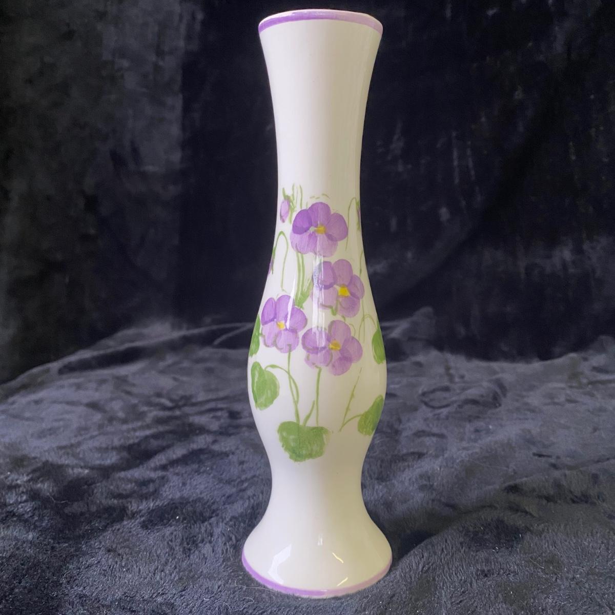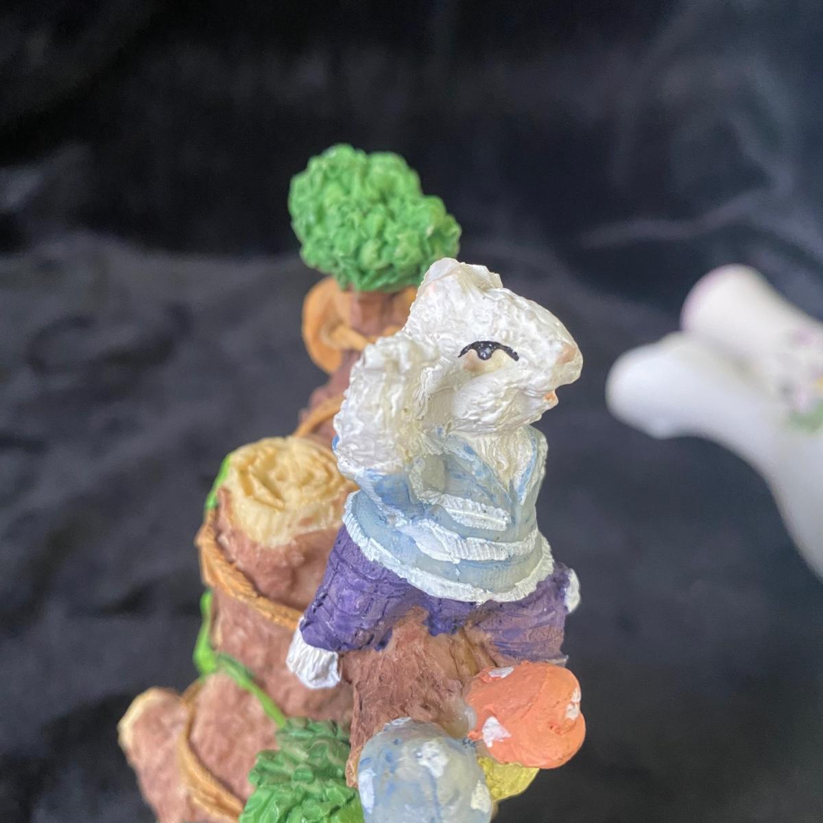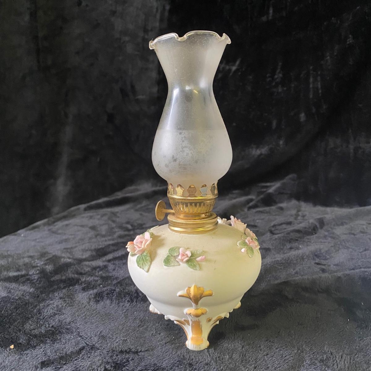 Three Lefton floral pieces that match. The small pitcher, small egg shaped bowl and oil lamp. Also included three Easter bunny clay figures, one has broken ears.
