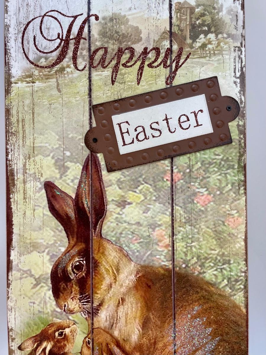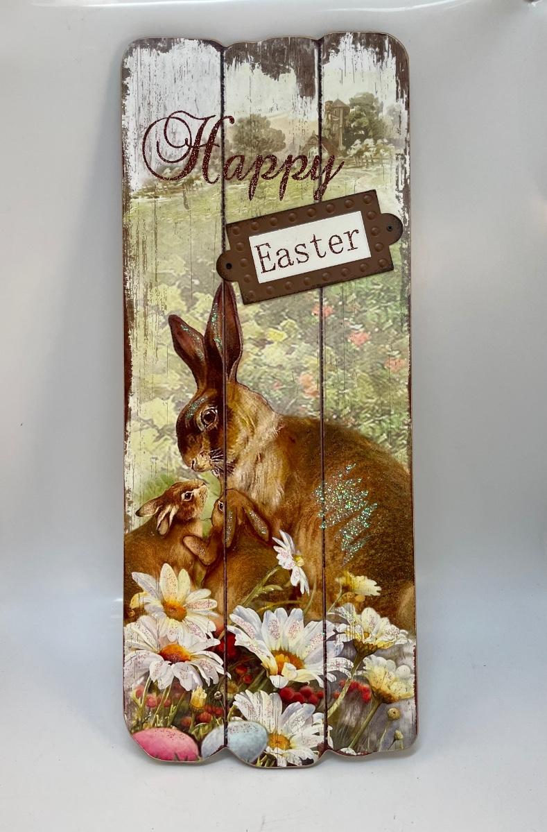 Easter Hanging Wall Decor Picture, looks like 3 painted wood slats. Approx. 9" x 24"