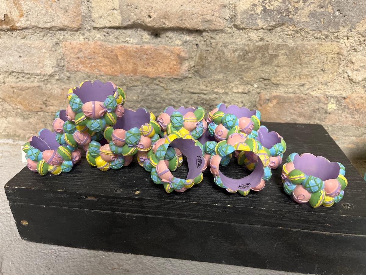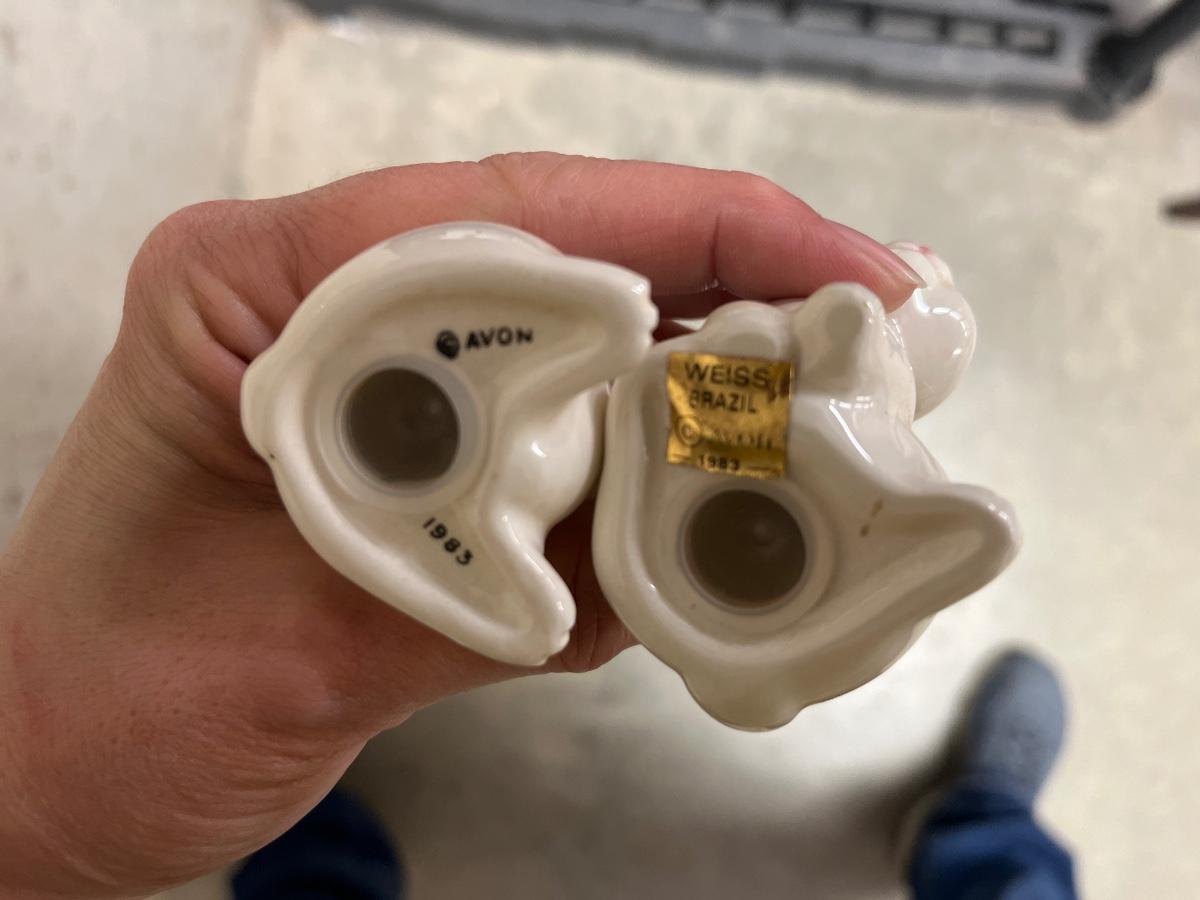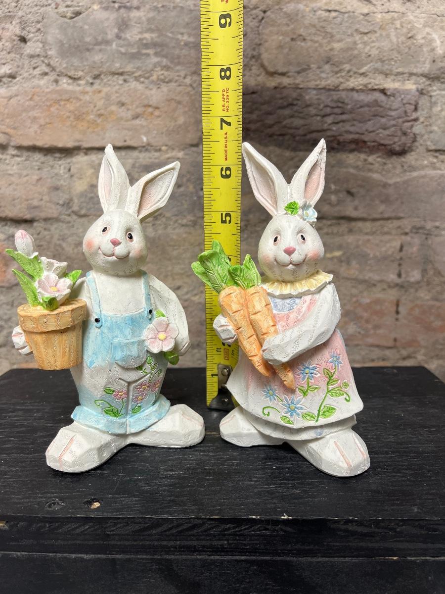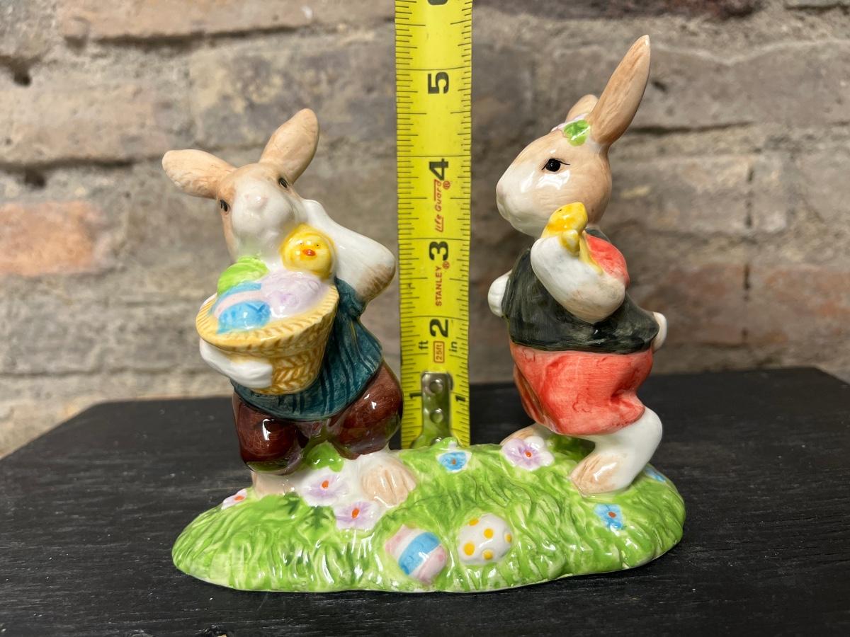 Sweet little bunny salt & pepper shakers, porcelain bunnies figurine, egg basket, a pair of resin bunny figurines, and a set of Easter napkin rings