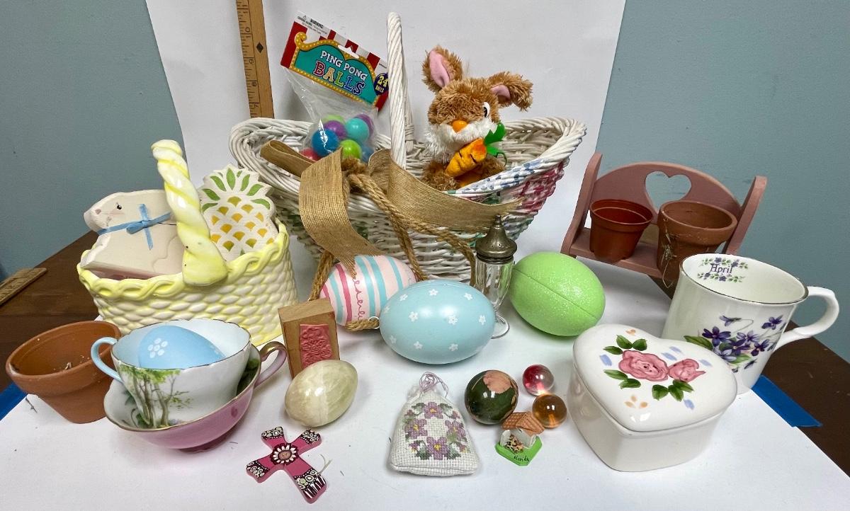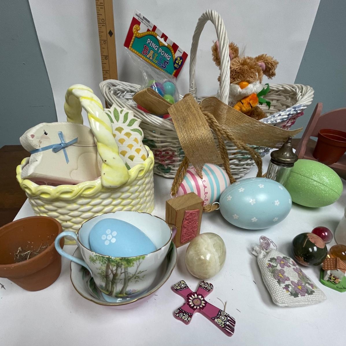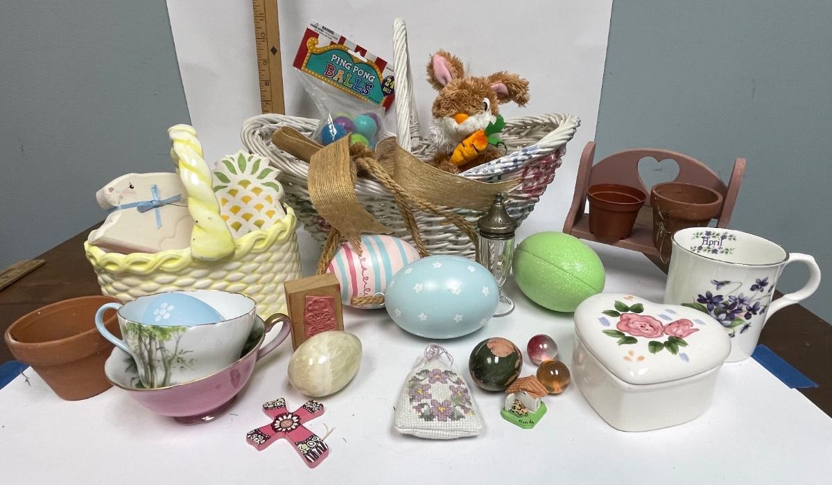 Easter Spring Decor Lot - DanDee bunny, baskets, eggs, teacups, etc