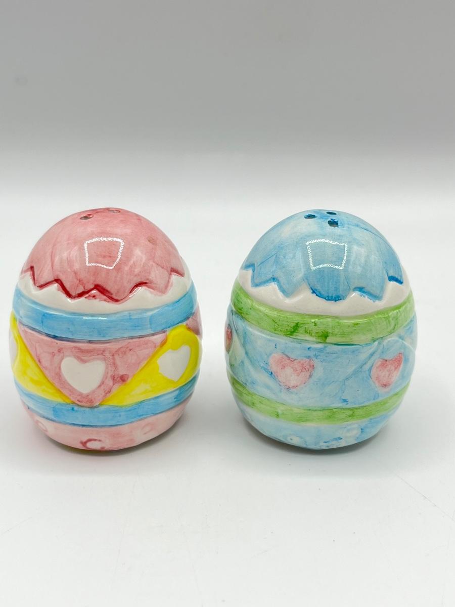 Easter Themed Porcelain Deviled Egg Serving Stand With Matching Salt & Pepper Shakers