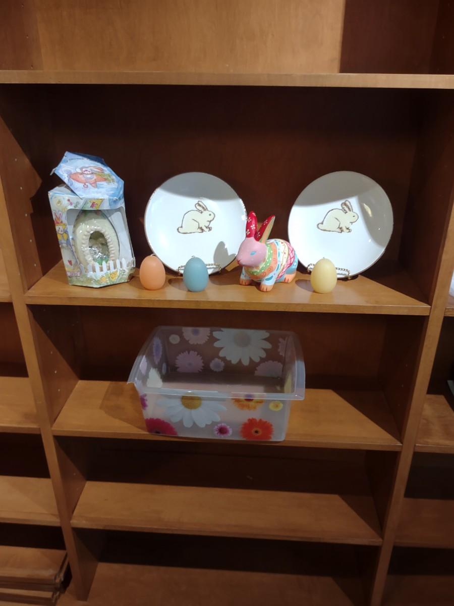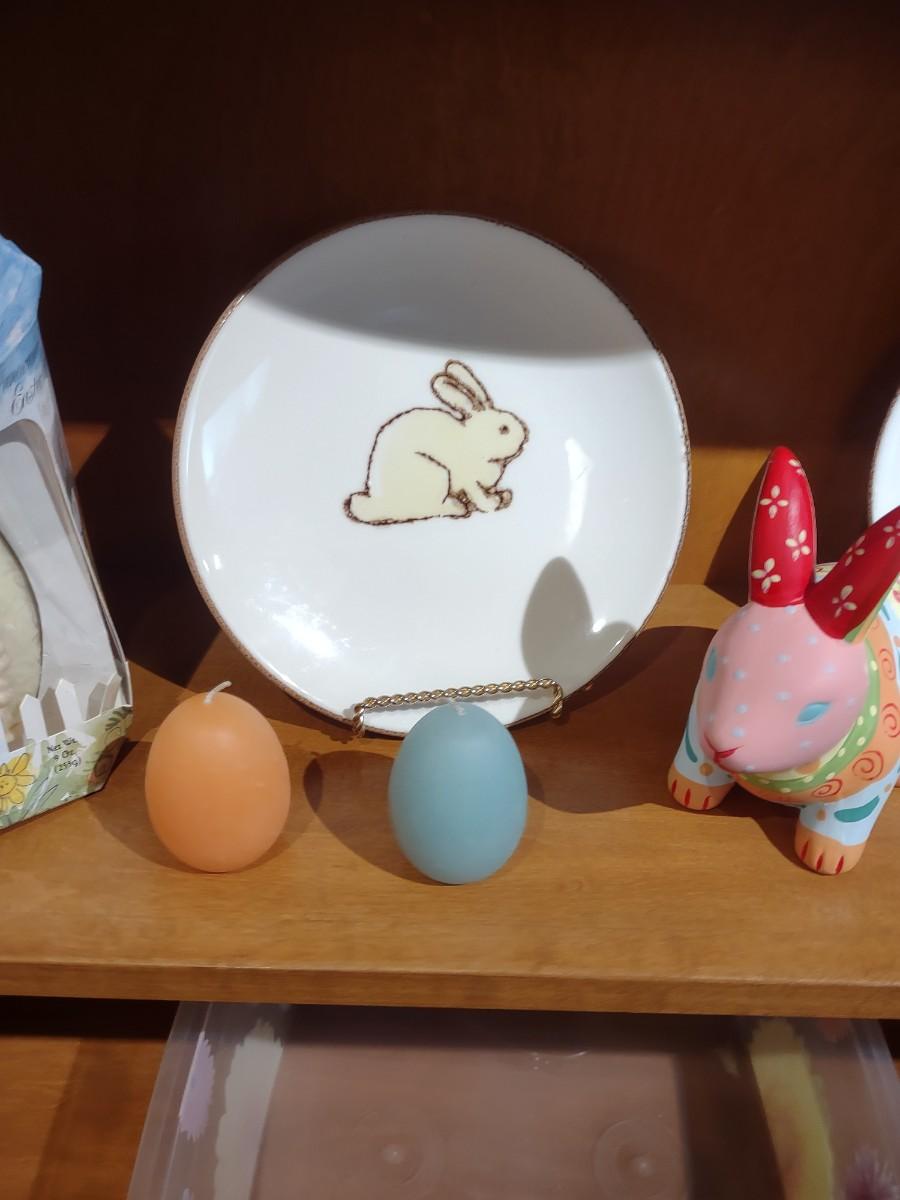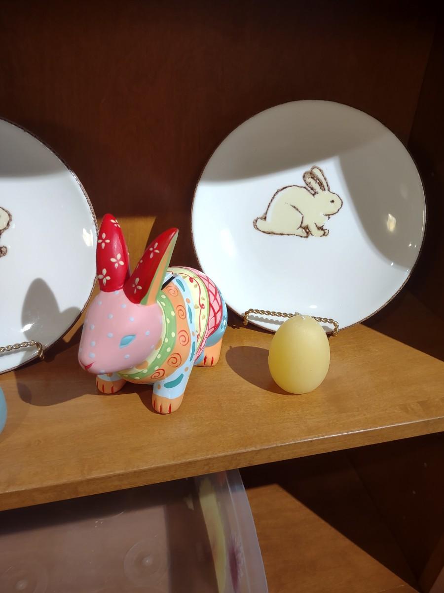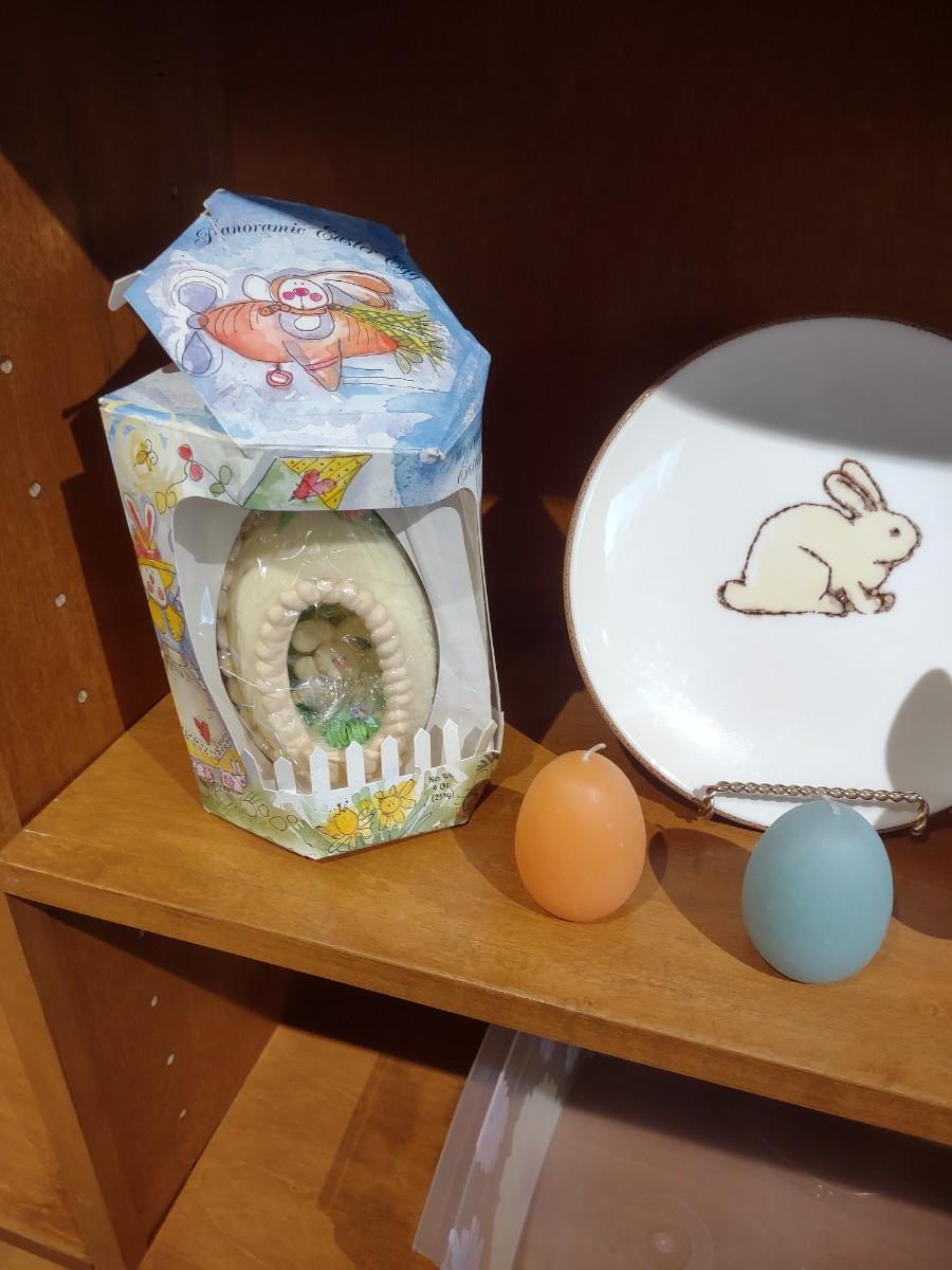 UGAR EGG DIORAMA, RABBIT COIN BANK & PLATES PLUS EGG CANDLES