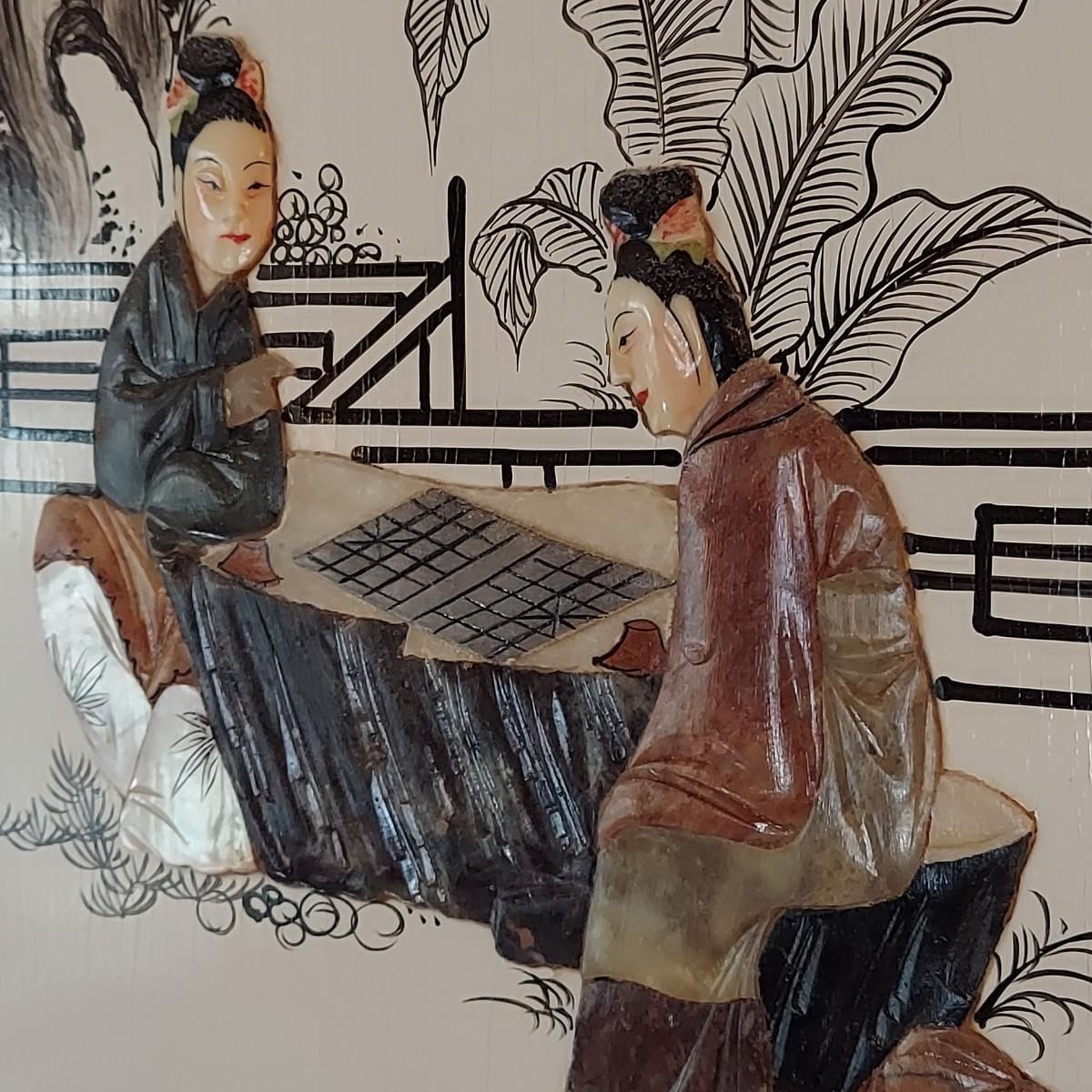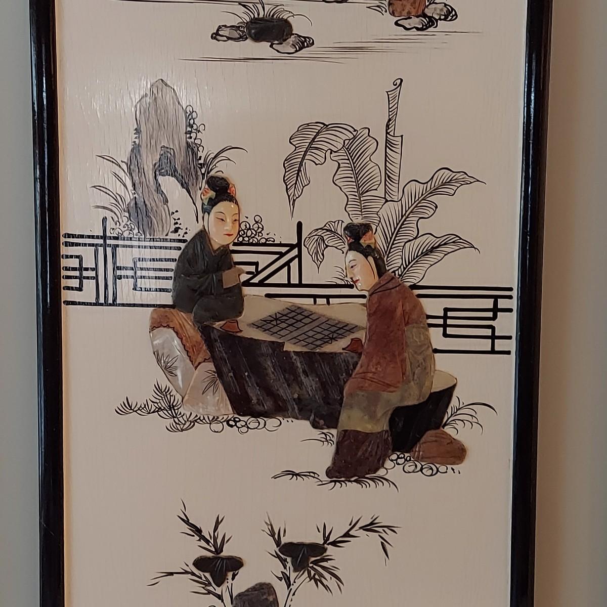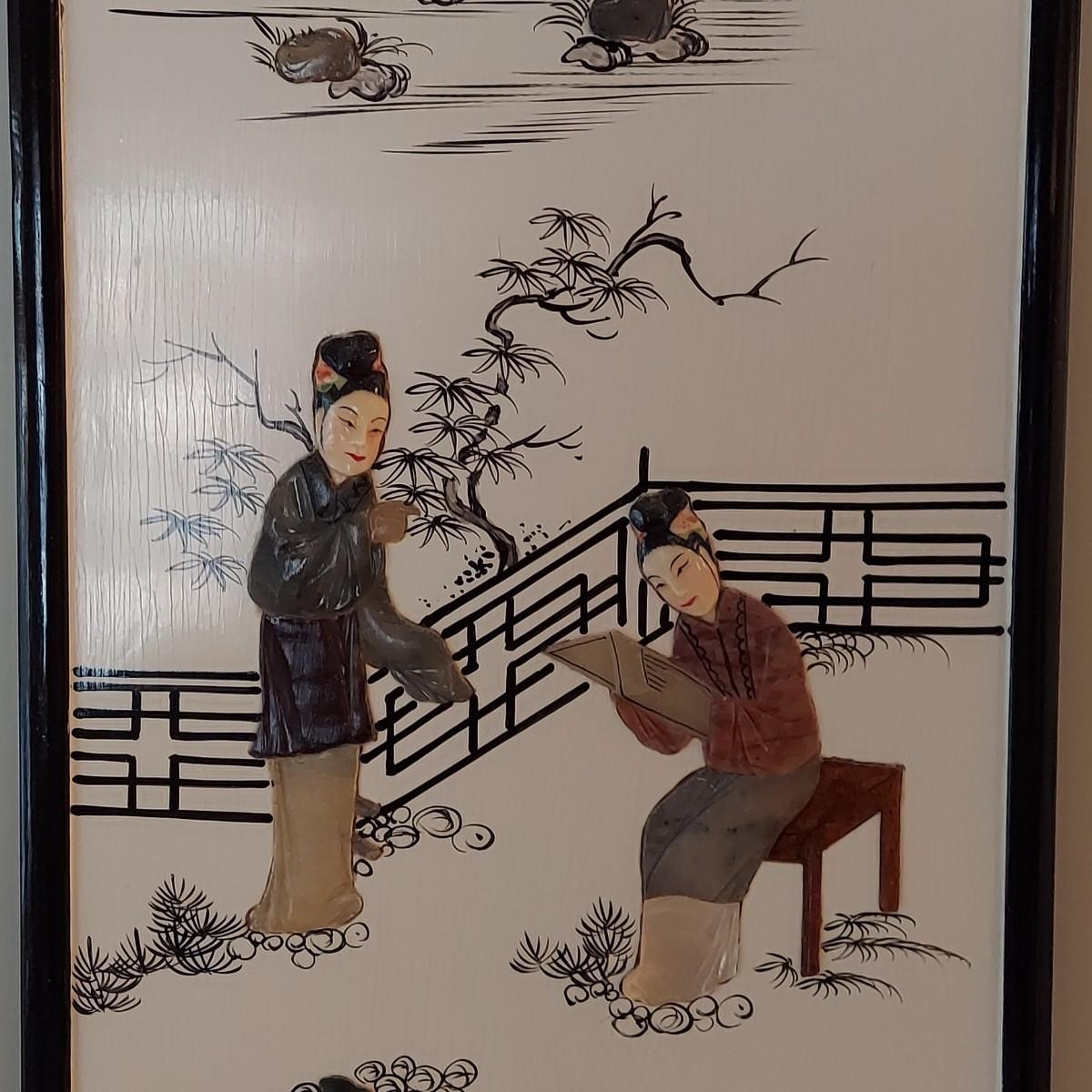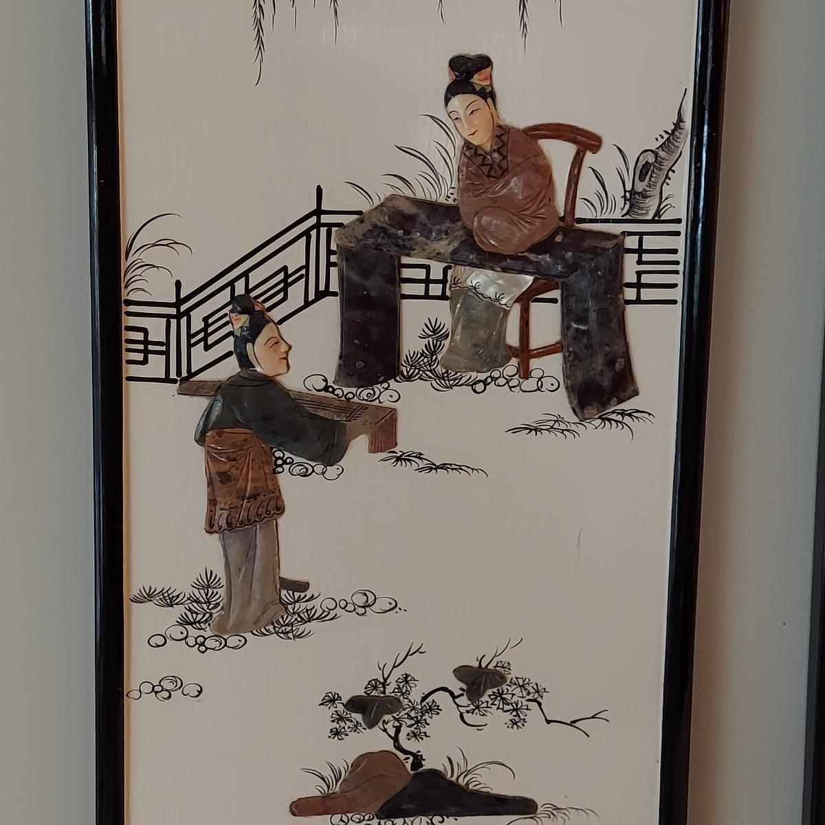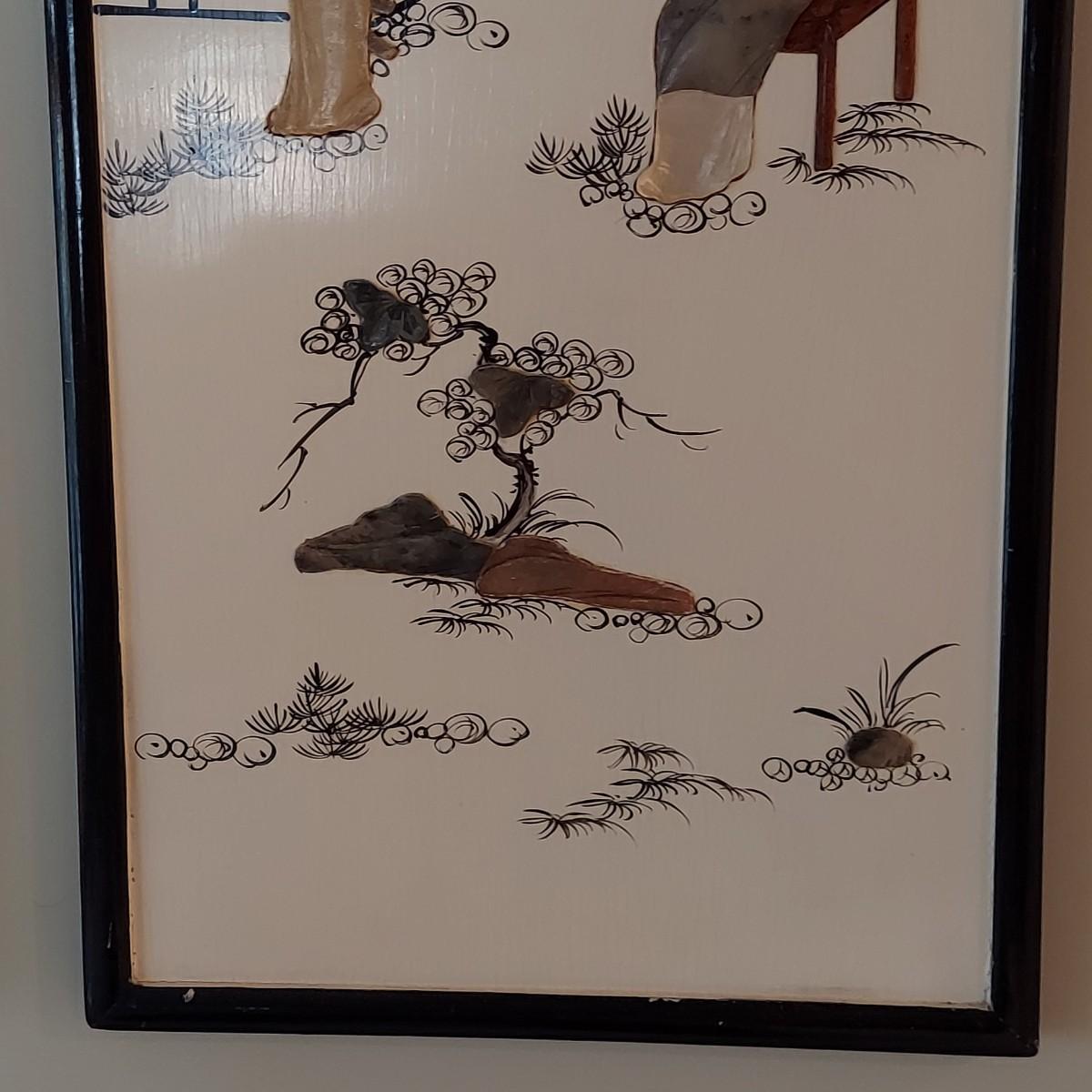 Eastern Asian Four Panel Art w/ Semi Precious Stonework (PB-BBL)