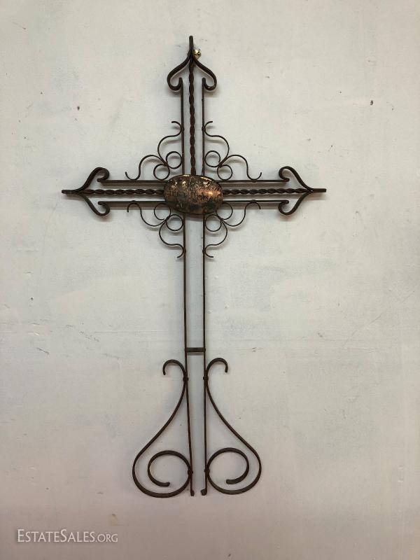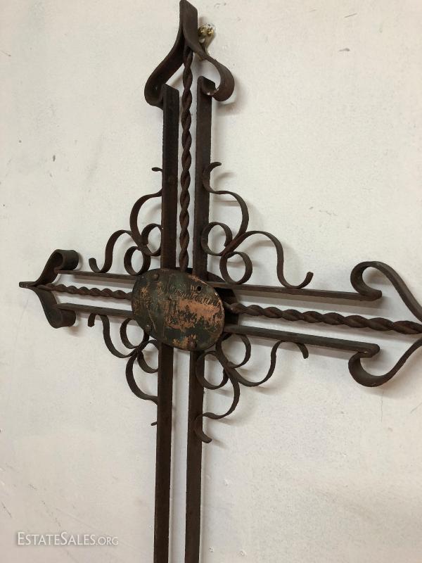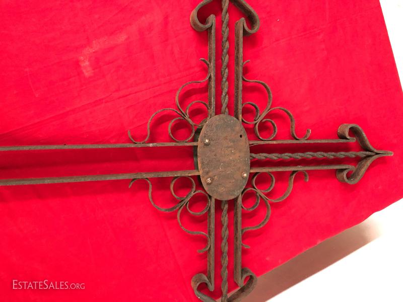 European Church Cross made from wrought iron 100 plus years old, 48" by 25".