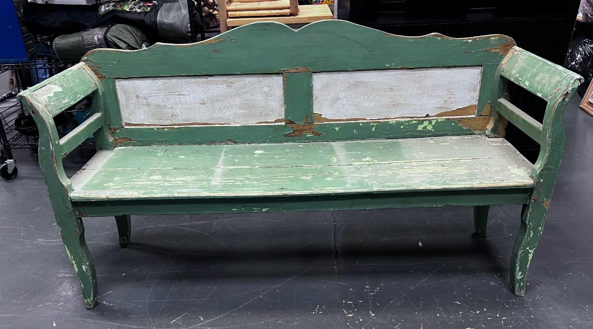 Cool Chippy Paint. Huge. Measures 70" Long 19" Tall to seat. Back is 38" Tall