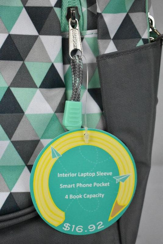 Eastsport Multi-Purpose Access School Backpack, Mint & Gray Triangles - New