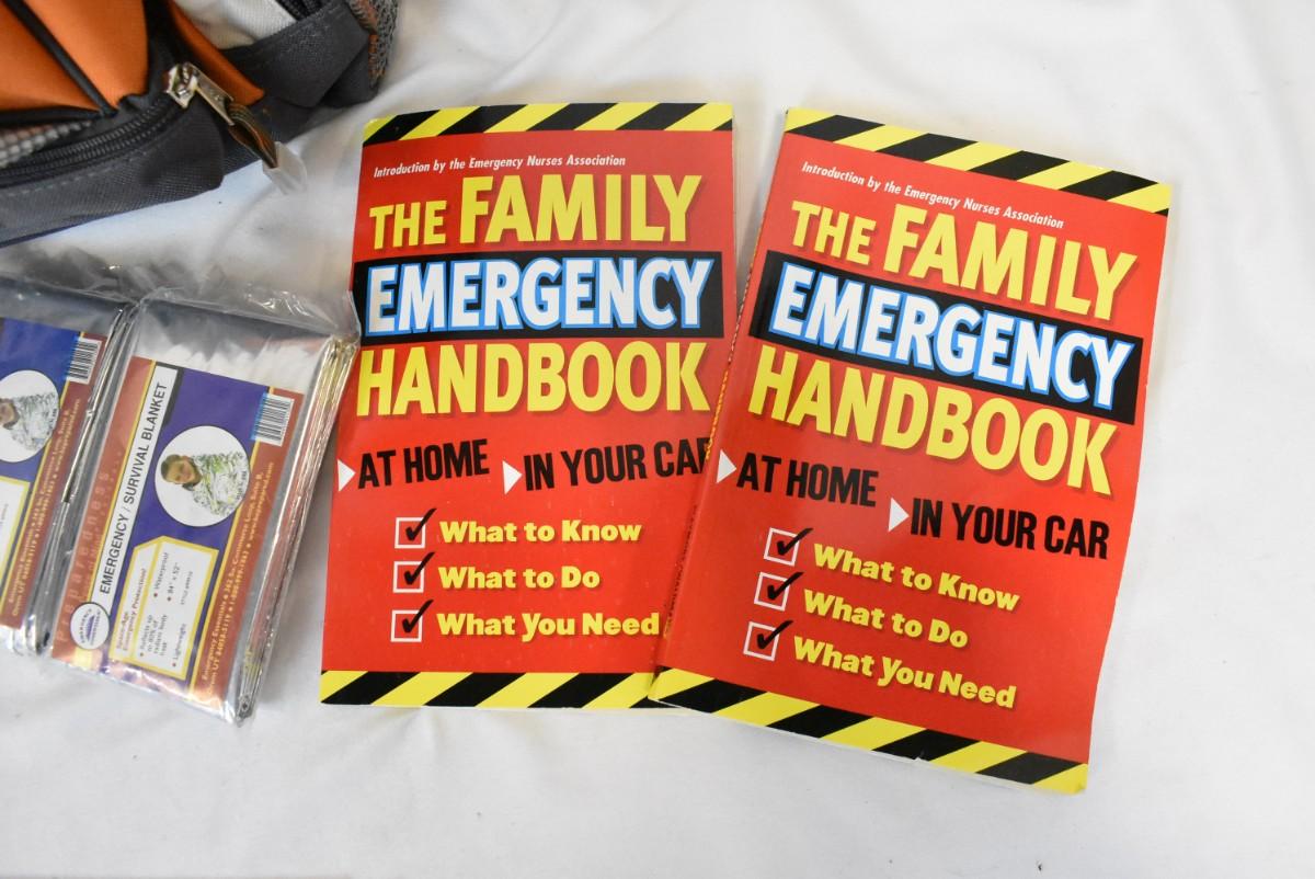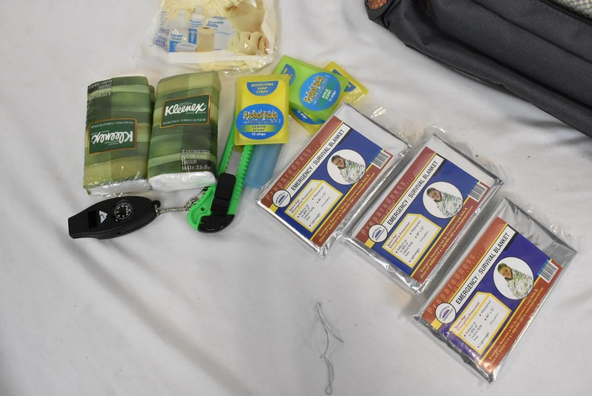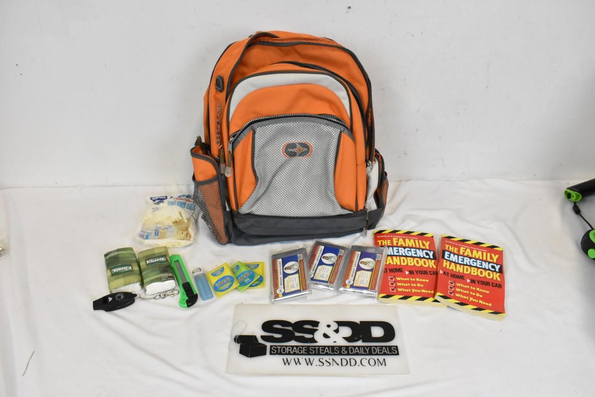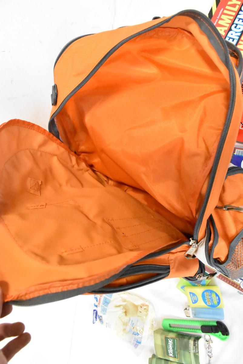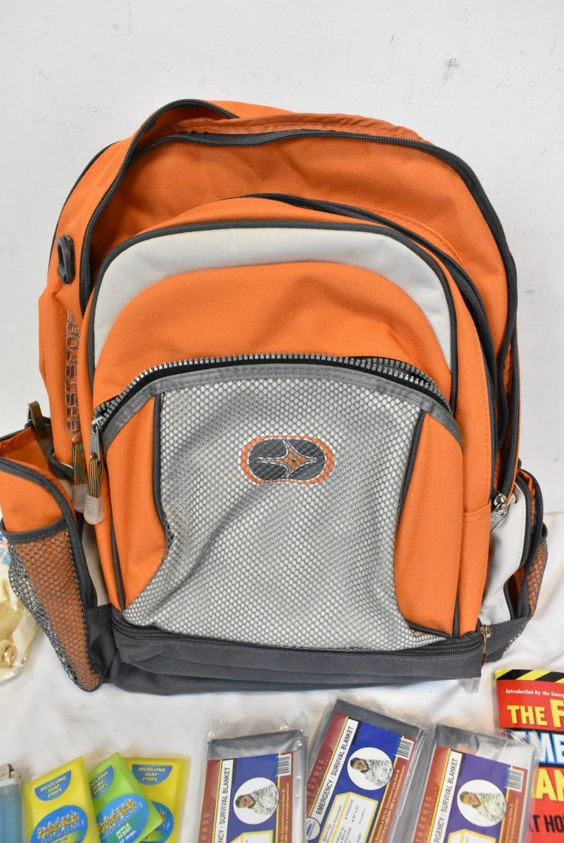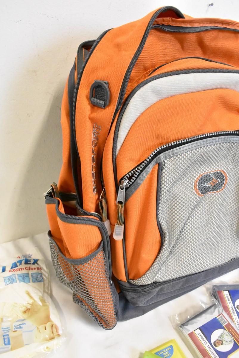 Eastsport Orange Backpack, Emergency Blankets, Kleenex