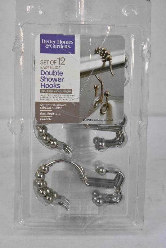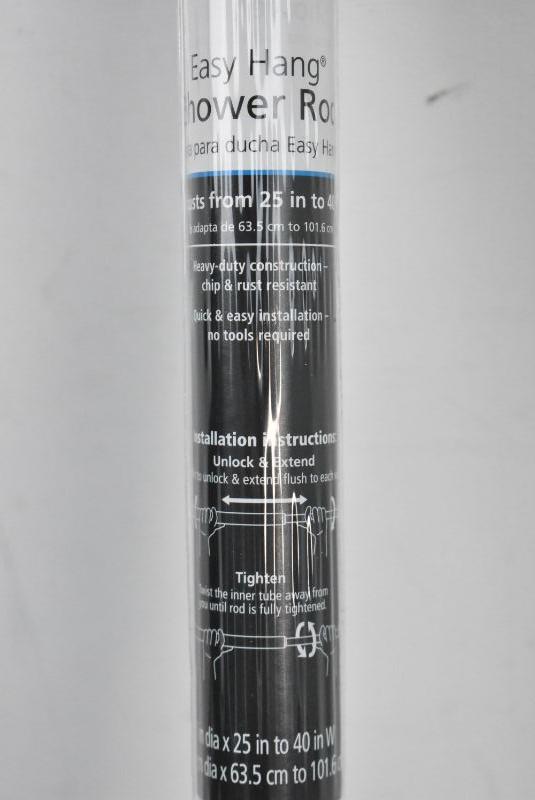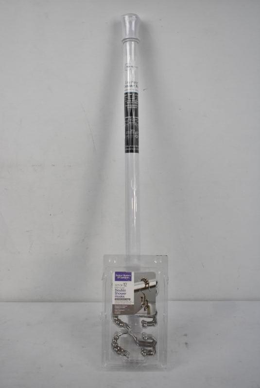 Easy Hang Shower Curtain Rod 25"-40" & 12 Double Shower Curtain Hooks - New