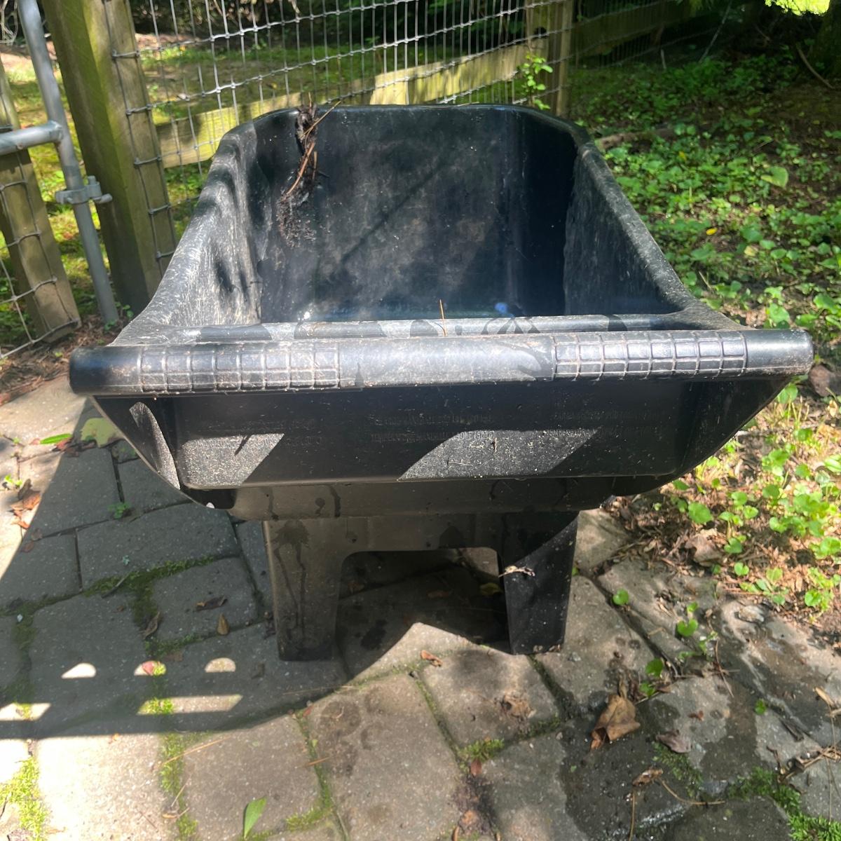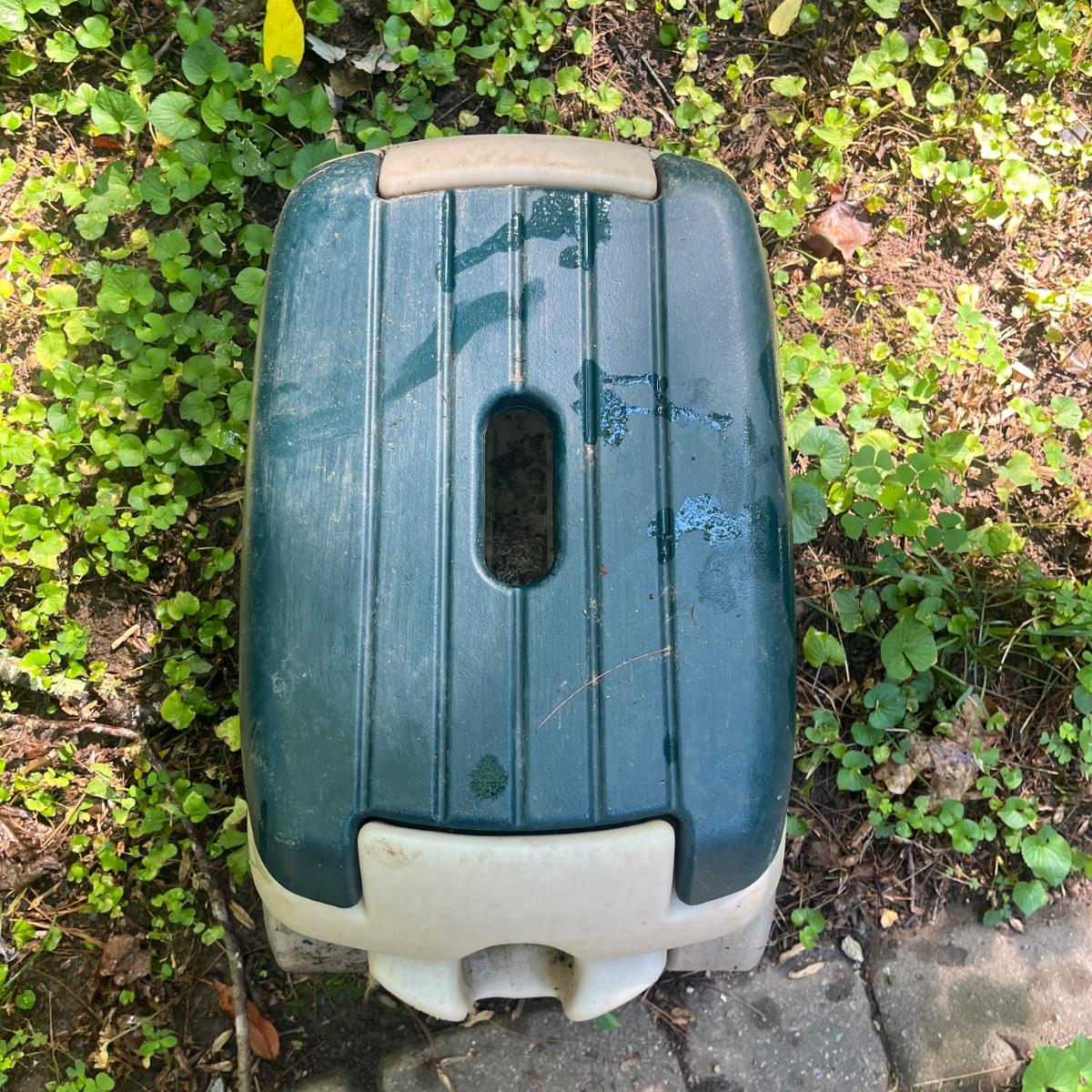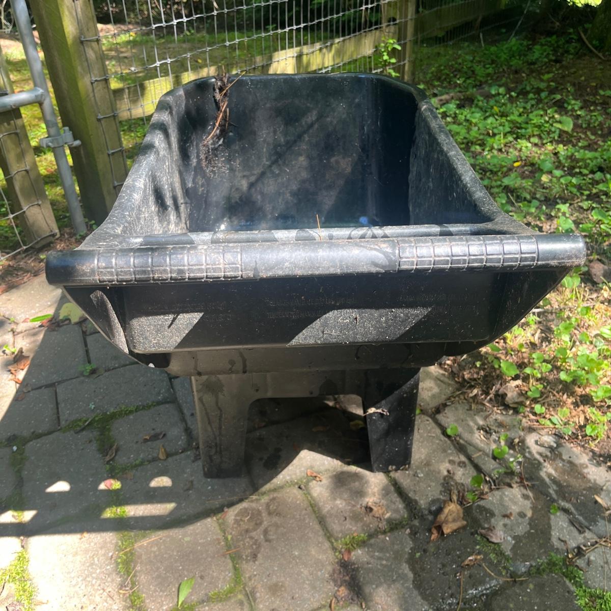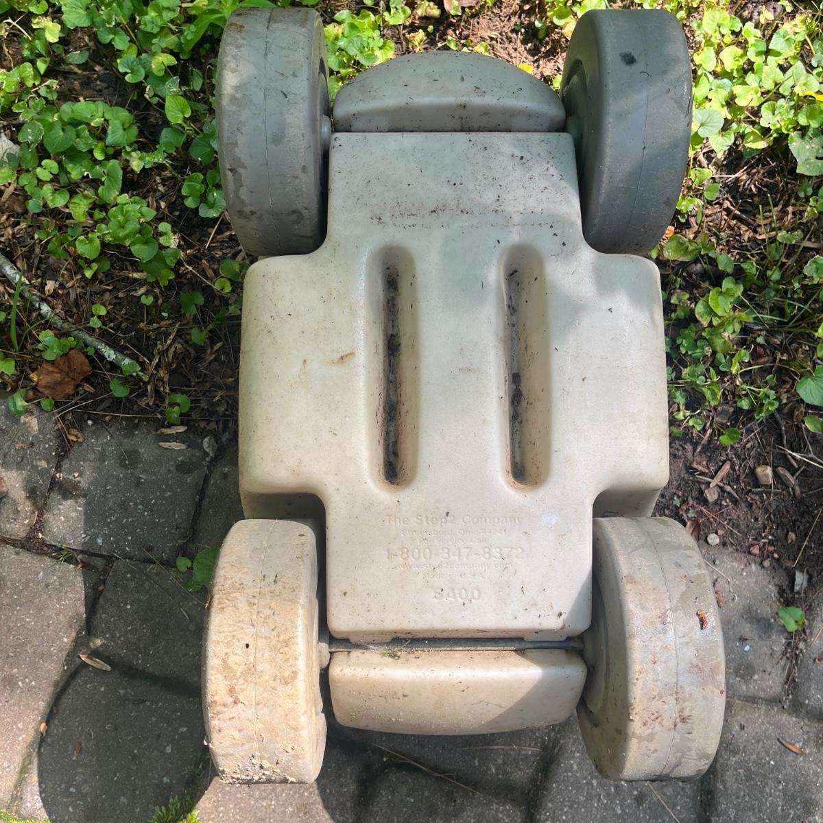 Lot includes an Easy Roller plastic garden cart and a Step2 wheeled plastic seat. Cart measures 37” x 20” x 25”H.