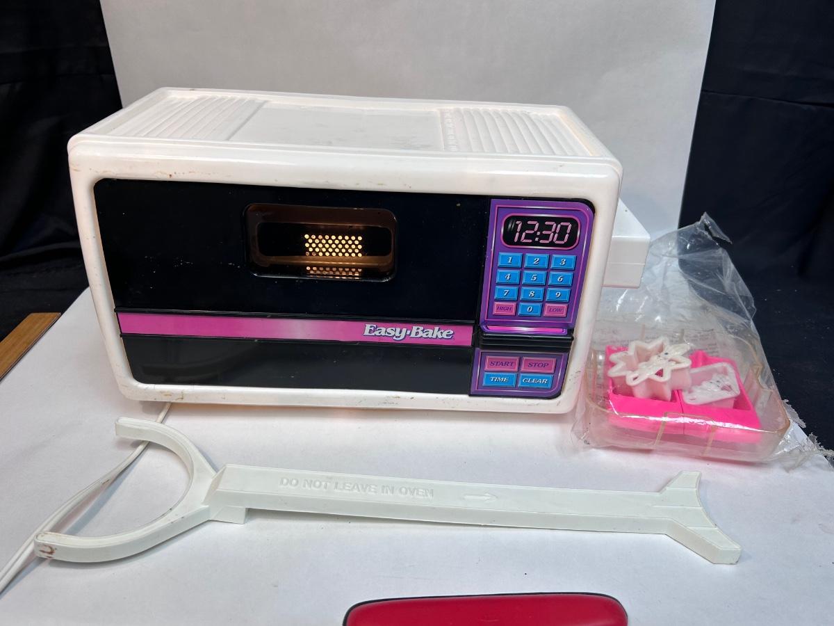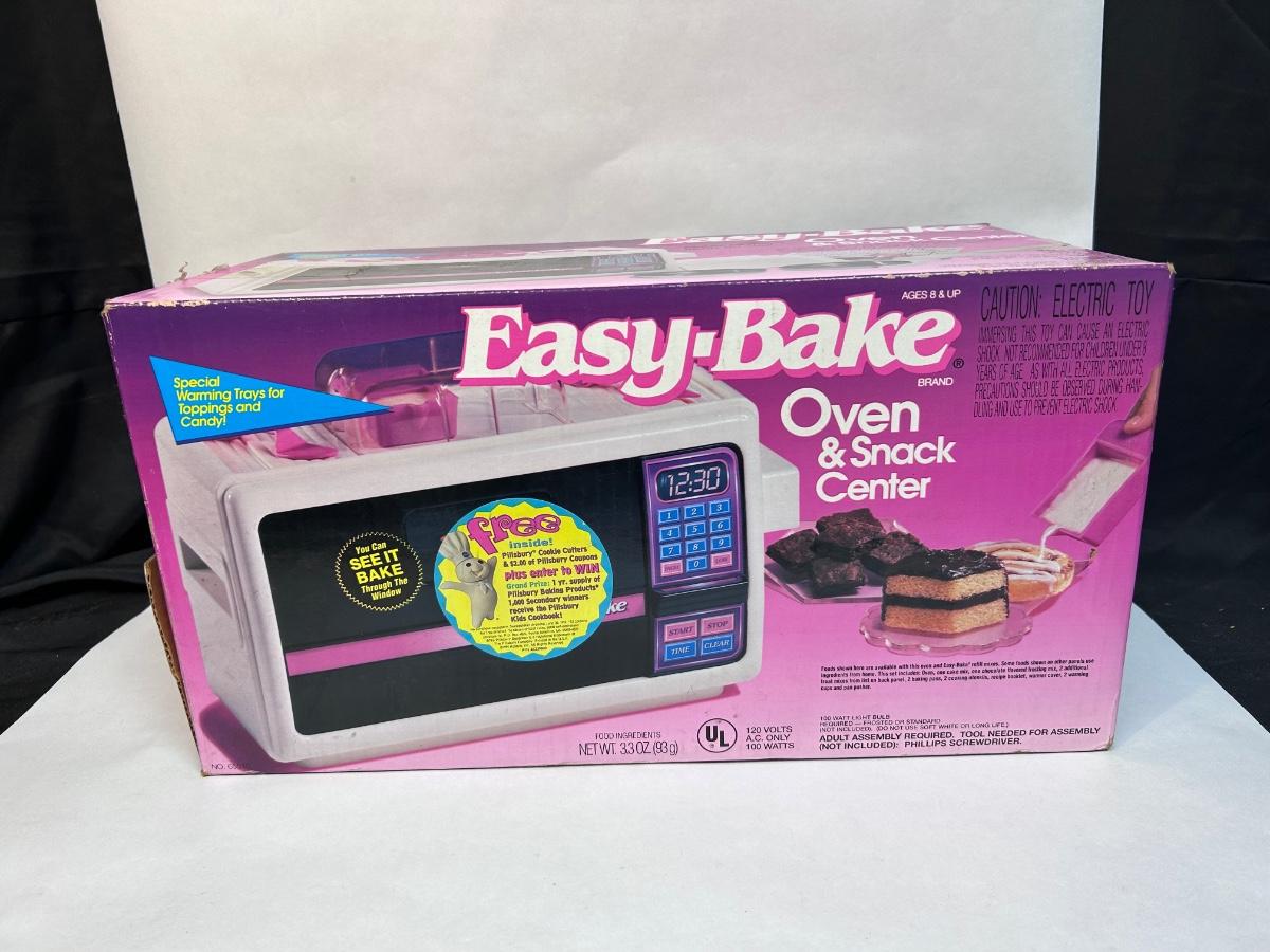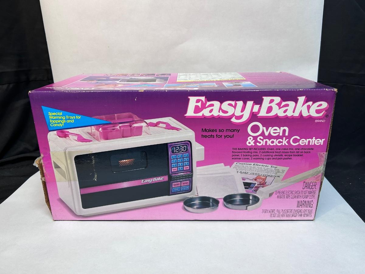 Easy-Bake Oven & Snack Center Original Box Works. In good previously used condition. Plugged in and it does seem to work. Missing the two metal round pans and does not have any mixes but you can find accessories online.