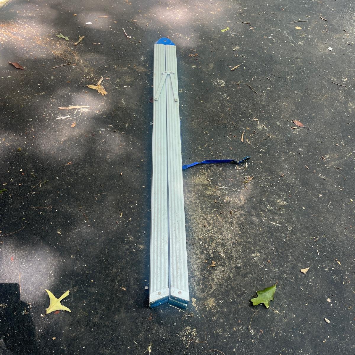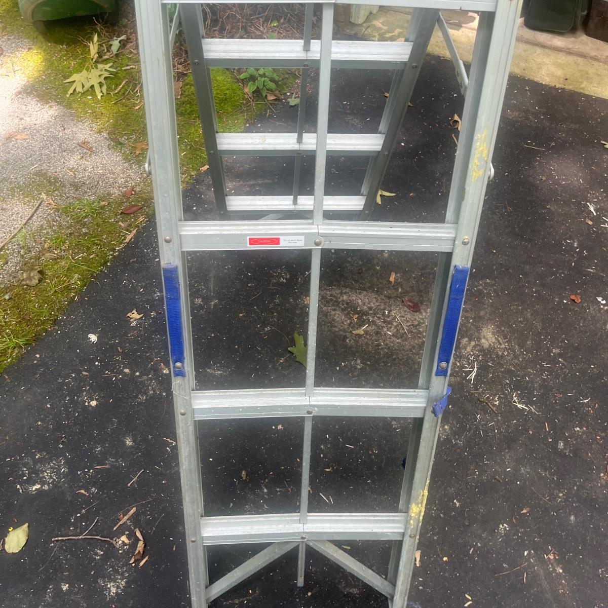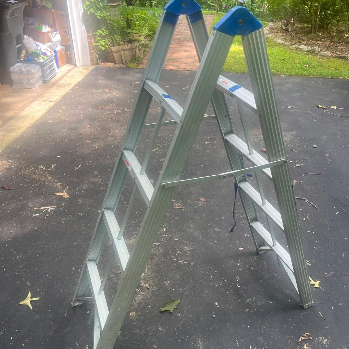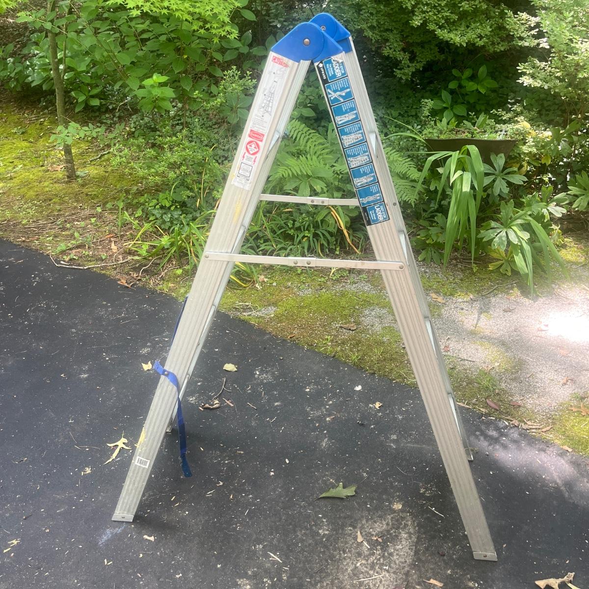 Lot includes a unique Easy-Stor folding aluminum ladder. Ladder measures 17” x 46” 58”H when open and 5” x 3” x 60”H when closed.