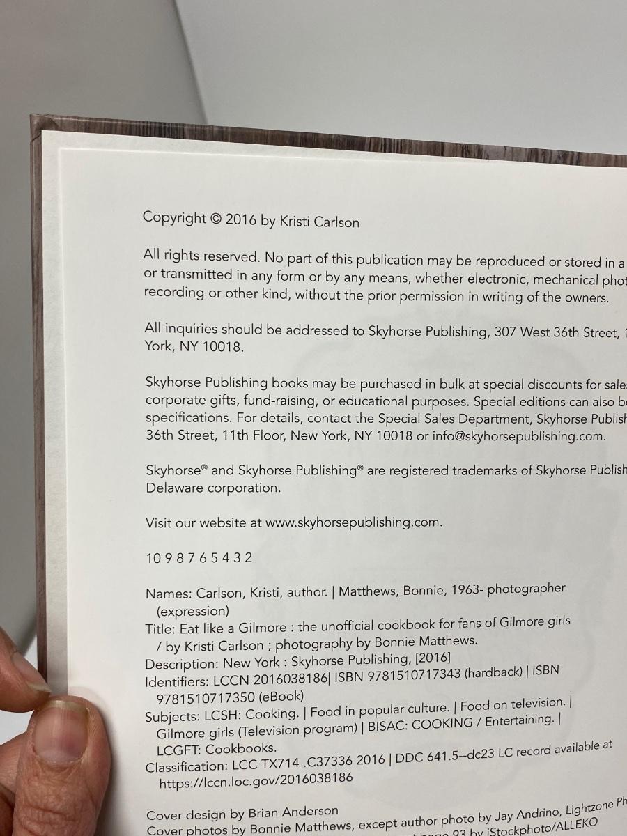 "Eat Like a Gilmore" the Unofficial Cookbook for Fans of Gilmore Girls. Hardback book in good condition. Packed full of great recipes. Copyright 2016.
